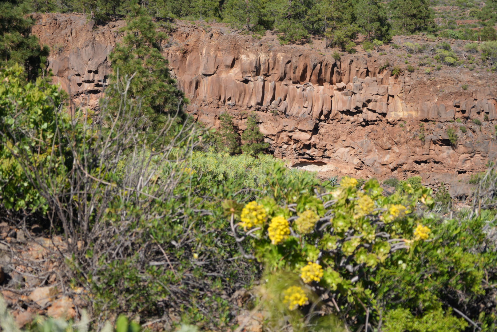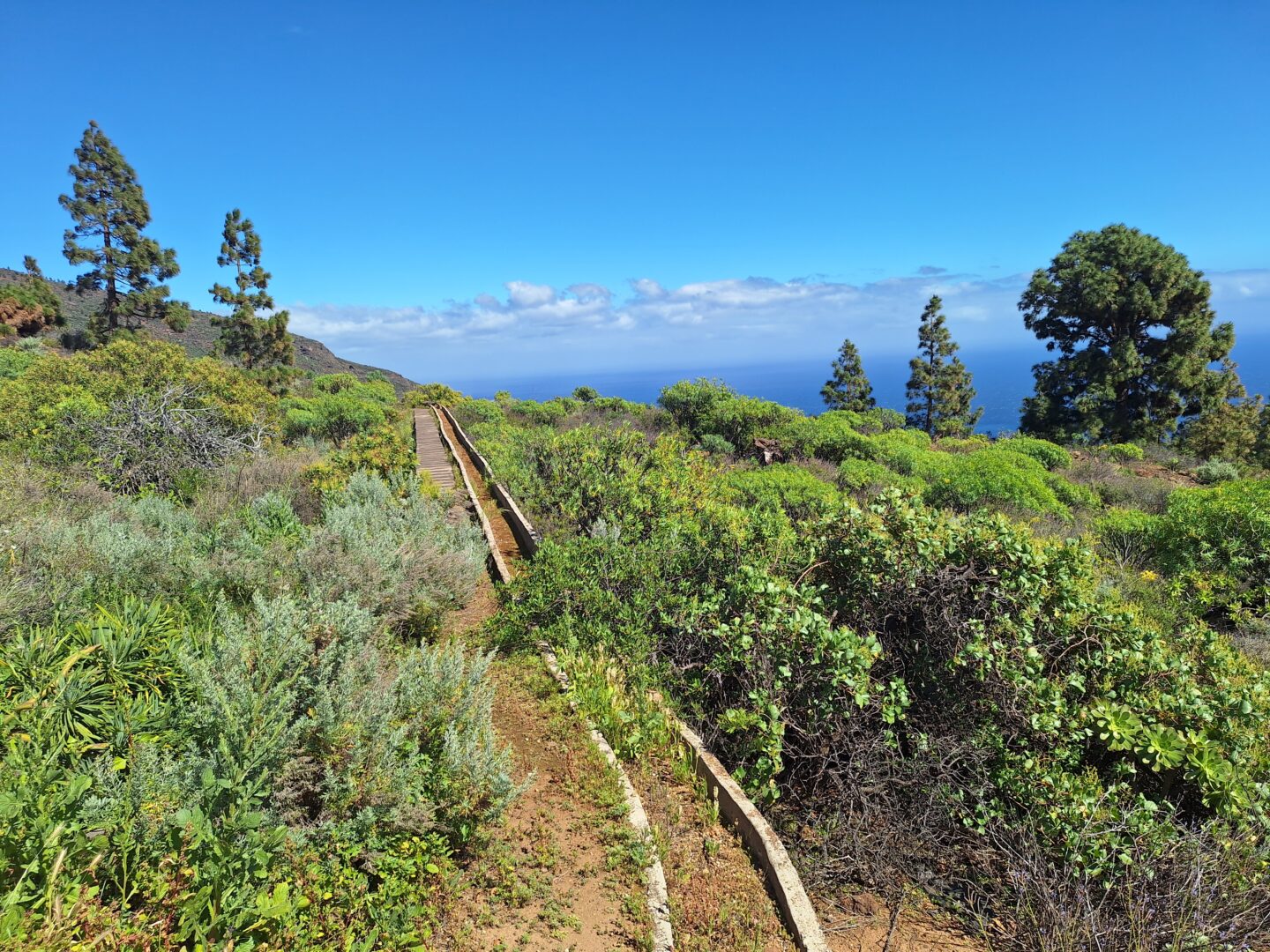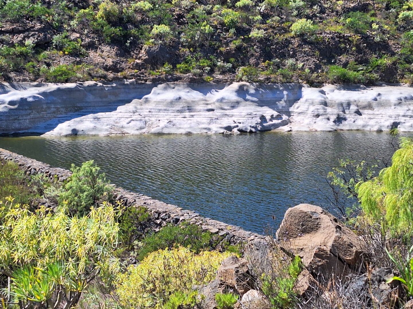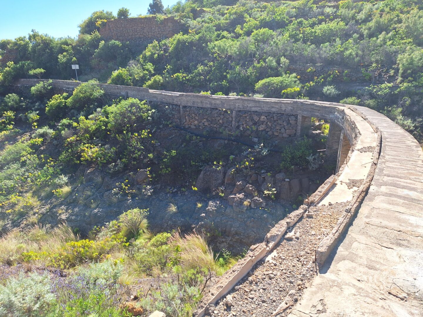 Es geht sehr steil bergauf, vorbei an vereinzelten Häusern, aber unspektakulär. Doch sobald wir den höchsten Punkt erklommen haben, wird es wunderschön. Imposante Barrancos, tolle Aussichten, alte Wasserleitungen und farbenfrohe Vegetation lassen den anstrengenden Aufstieg schnell vergessen . Doch auch der Abstieg ist anspruchsvoll. Unebenheiten und loses Lavageröll lassen uns immer wieder ins Rutschen kommen. Wir schaffen es, nach knapp 3,5 h wieder heil am Auto anzukommen.