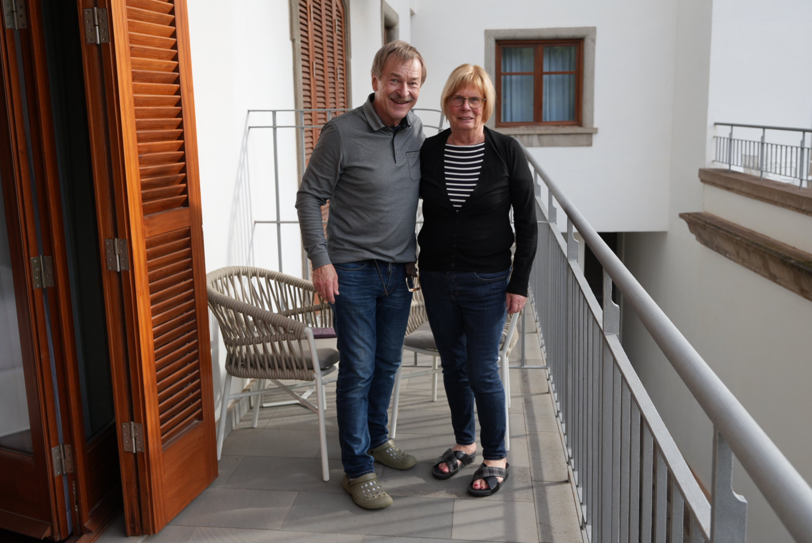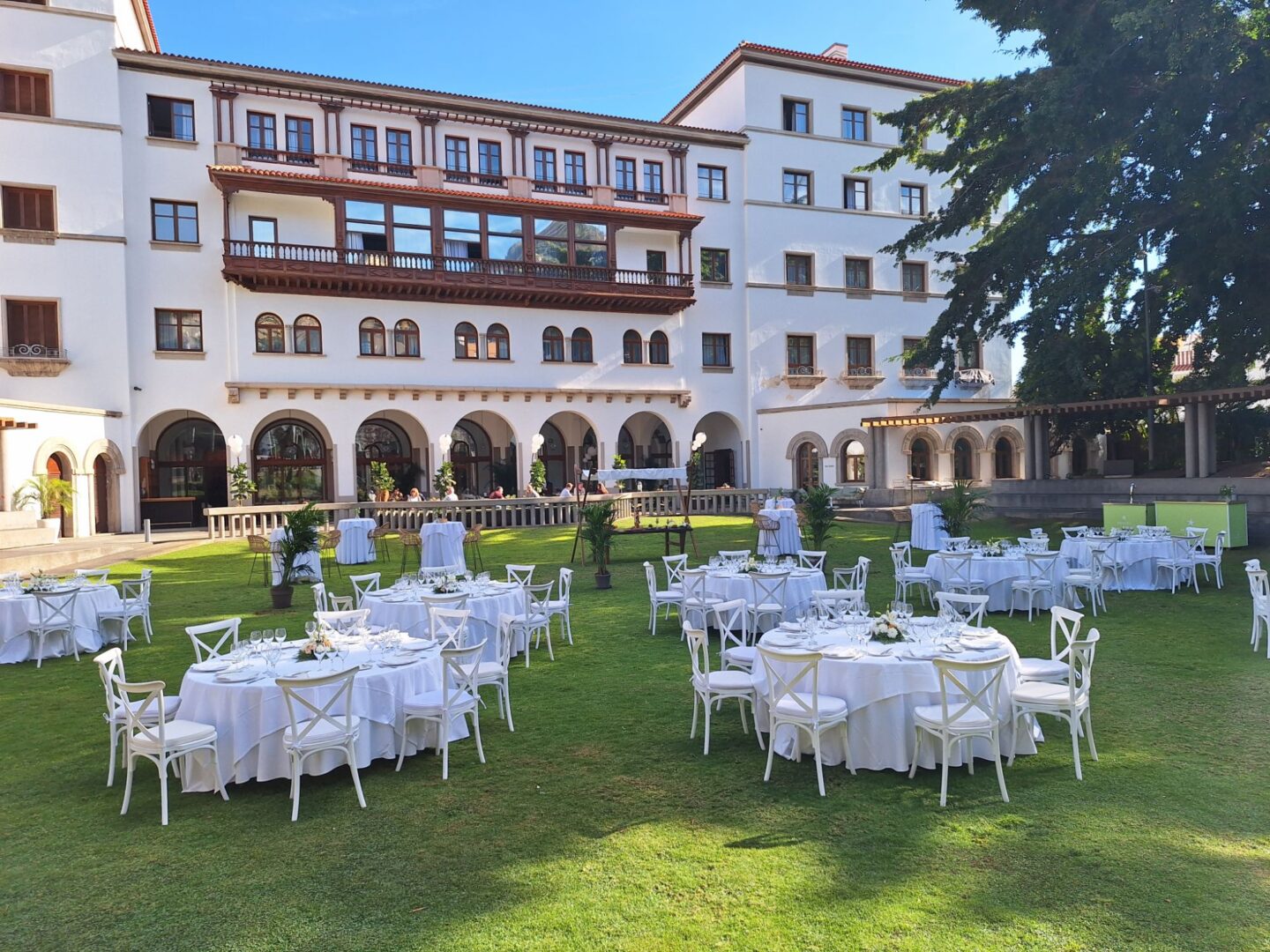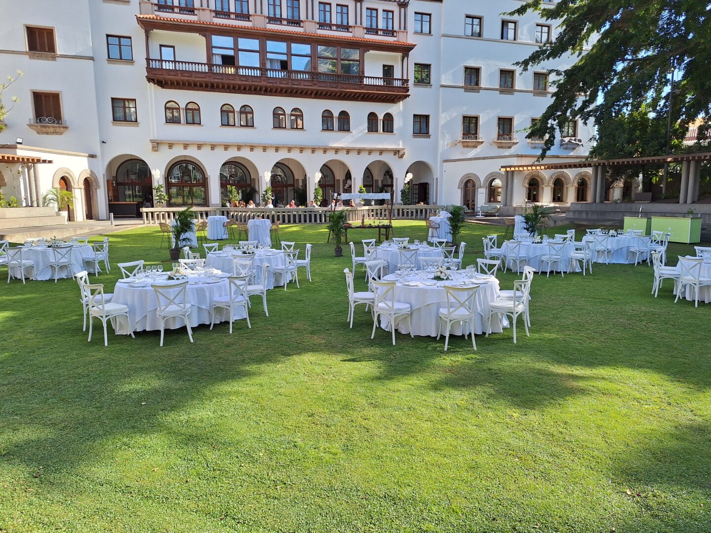 Im Hotel hat man für Werbefotos im Garten eine tolle Festbestuhlung aufgebaut.
