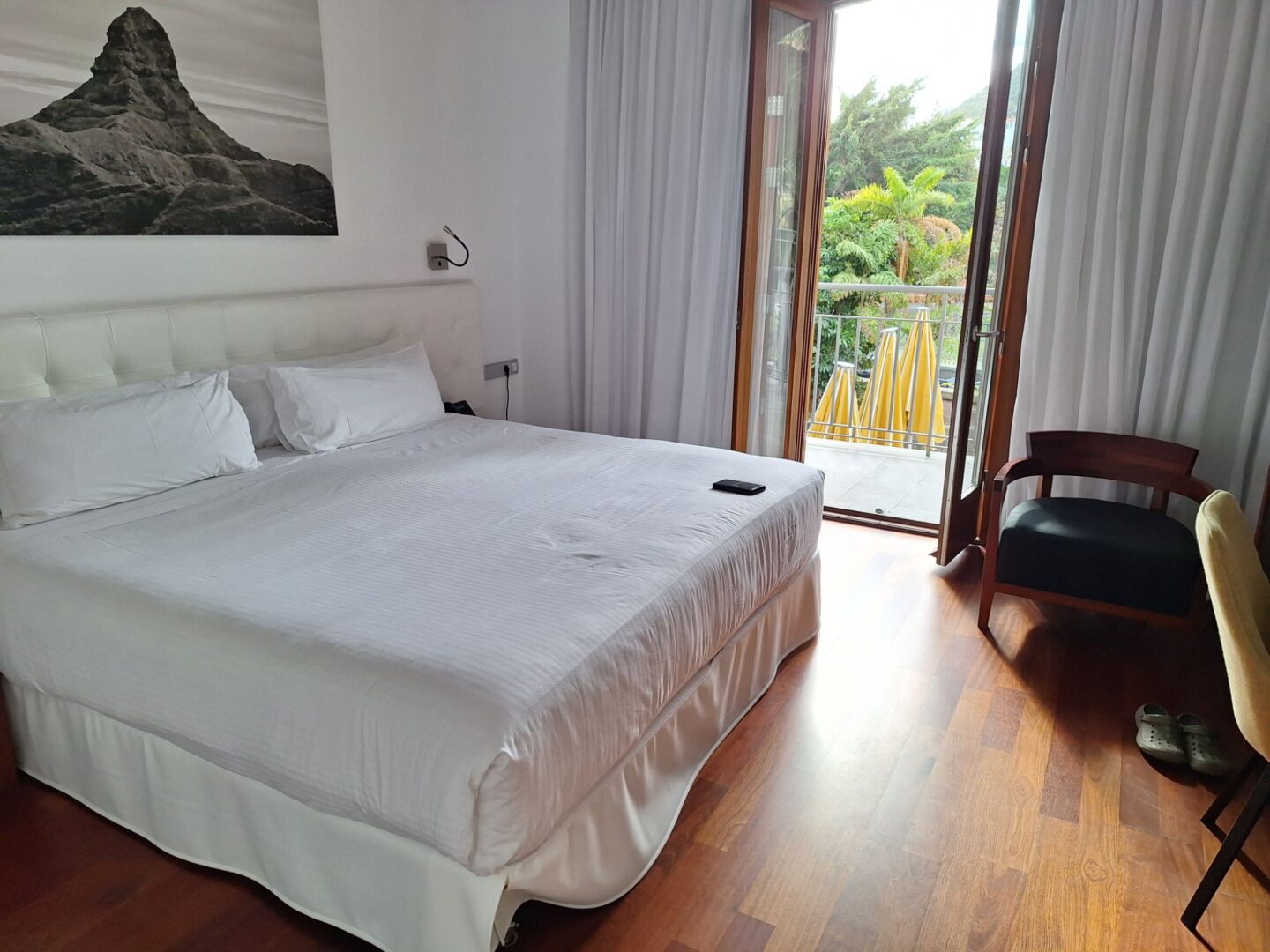 Unser gestern online gebuchtes Auto wartet am Flughafen und nach ca. 60 km erreichen wir das Hotel. Ein Upgrade in die Juniorsuite mit 1 Flasche Wein, 1 Käseplatte und einem Spaaufenthalt wird uns an der Rezeption für „nur“ 580 Euro Aufpreis angeboten. Schaut euch die Zimmerfotos an – braucht man da ein Upgrade?