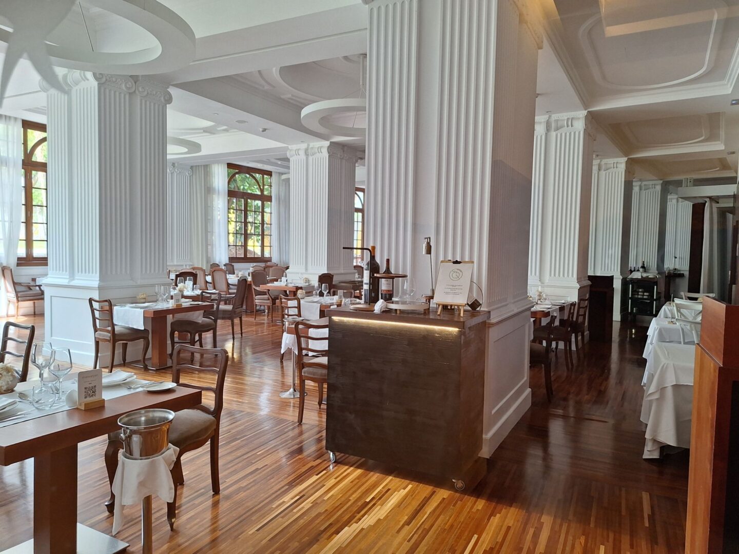 Wie schön, beim Aufwachen um 9 Uhr sieht der Himmel vielversprechend sonnig aus. Wir freuen uns auf das Frühstück, das wir in allerbester Erinnerung haben. Doch als wir aus dem Auszug treten, treffen wir auf eine laaange Schlange, die alle frühstücken wollen und in dem riesigen Restaurant noch keinen Platz gefunden haben. Wir reihen uns ein und rücken relativ schnell voran. Nach einer kurzen Weile werden wir gefragt, ob wir im Restaurant frühstücken wollen oder uns am Buffet bedienen und dann die Bar aufsuchen. Letzteres wollen wir auf gar keinen Fall, denn dieses Frühstücksbuffet muss man an Ort und Stelle genießen. Und nach ca 15 Minuten haben wir unseren Tisch und schwelgen….. Besser geht’s nicht.