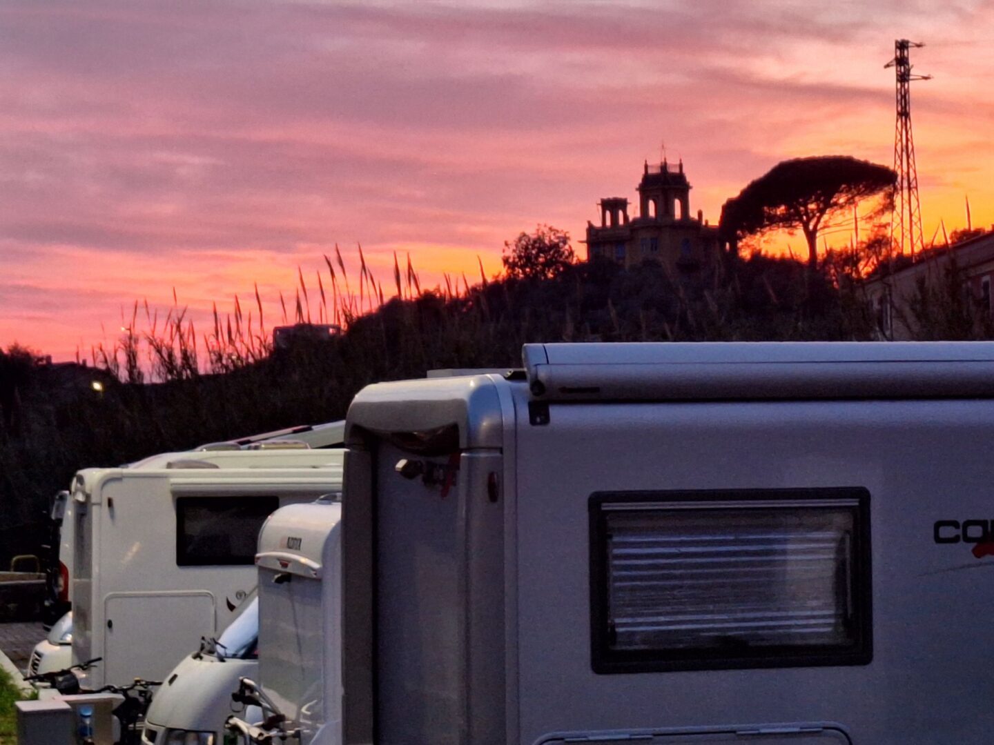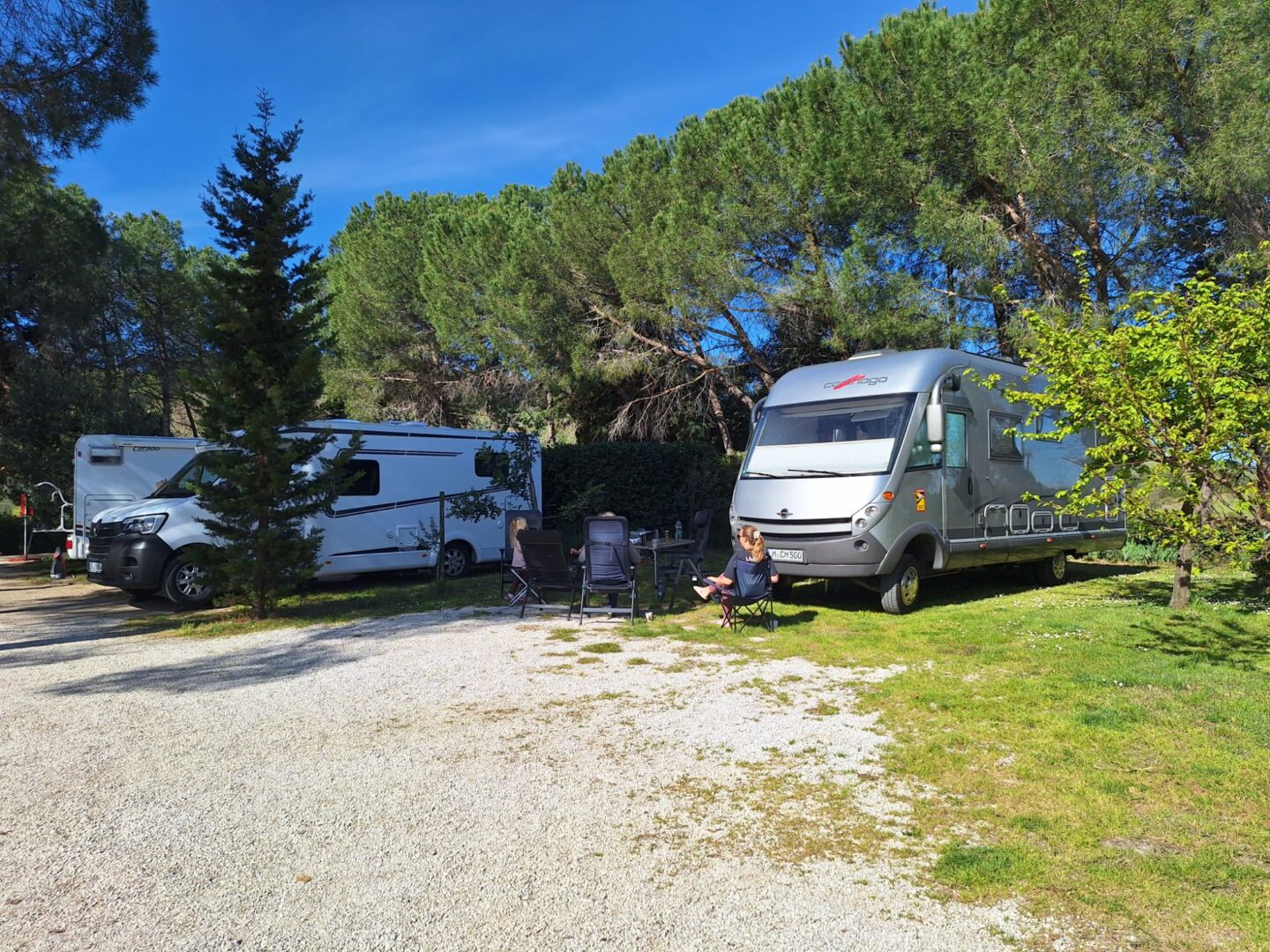 Abends stoppen wir in Lavagna auf einem Stellplatz 50 km vor Genua. Morgen soll die Fähre um 15 Uhr auslaufen.