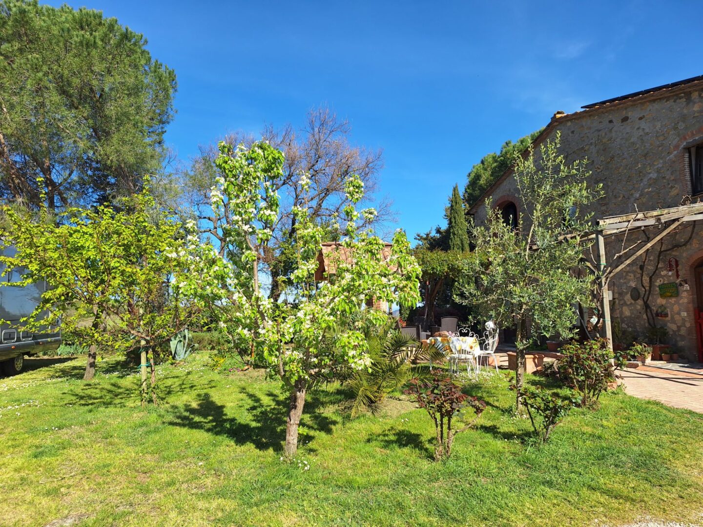 Der Osterreiseverkehr sorgt dafür, dass wir sehr viel Zeit im Stau verbringen und statt am Karfreitag erst am Abend des Ostersamstag ankommen – auf einem agricampeggio il colono nahe Volterra. Bei herrlichem Wetter verbringen wir dort gemeinsam 2 Tage,