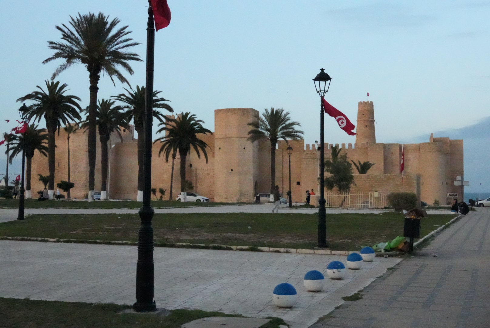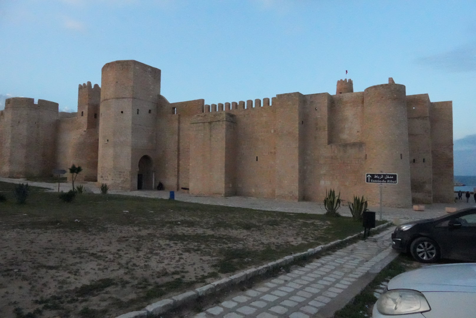 Heute Morgen begrüßt uns beim Aufwachen die Sonne. Doch auch in Tunesien gibt es Aprilwetter und 1 Stunde später schüttet es wieder, aber nur kurze Zeit. Ver-und Entsorgen ist hier etwas umständlich, aber es geht. Um 11 Uhr ist alles fertig und wir fahren 139 km südwärts bis Monastir. Im Carrefour in Hammamet kaufen wir für die nächsten Tage ein. In Monastir finden wir neben der Marina einen Stellplatz für unser Womo mit direktem Blick auf den Ribat, ein Ende des 8. Jhdts. erbautes Wehrkloster.