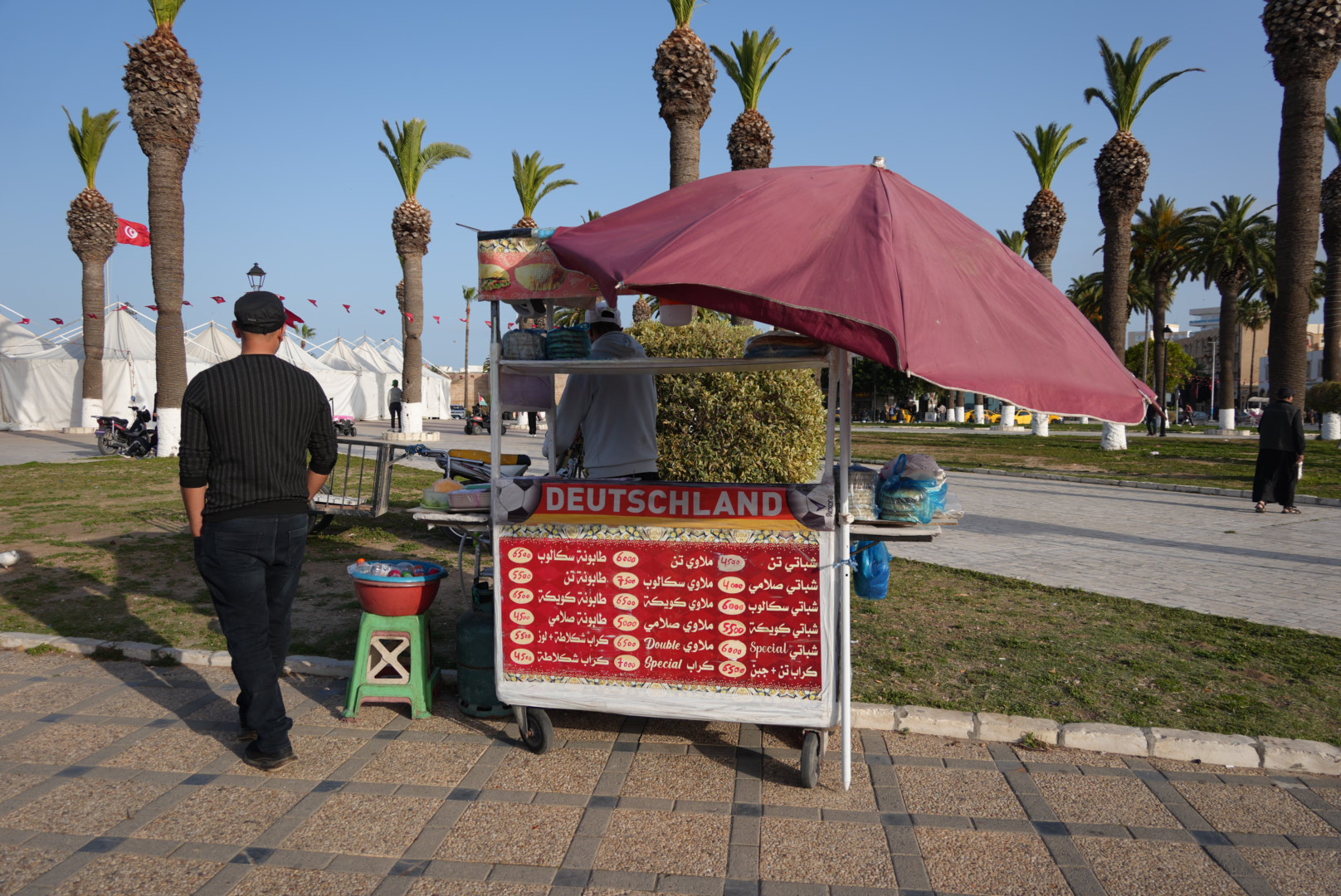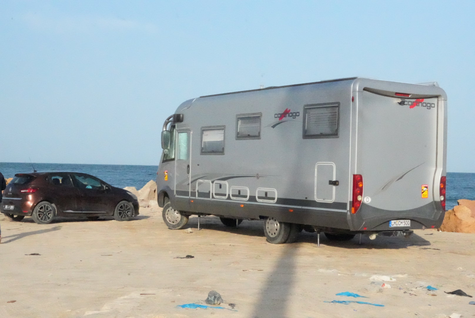 Als Übernachtungsplatz wählen wir in Park4night einen Parkplatz am Meer in Sidi Bou Said, einer als sehr sehenswert beschriebenen Stadt nahe Tunis. Bis in die Nacht hinein ist es sehr laut, Poser gibt’s hier reichlich. Doch dann wird es ruhig und wir können bis 7.30 Uhr (deutsche Zeit 8.30) wunderbar schlafen.