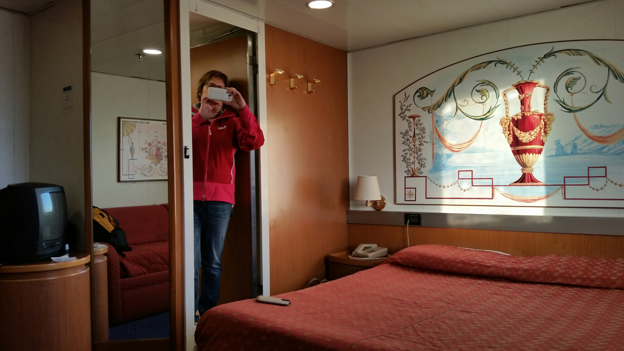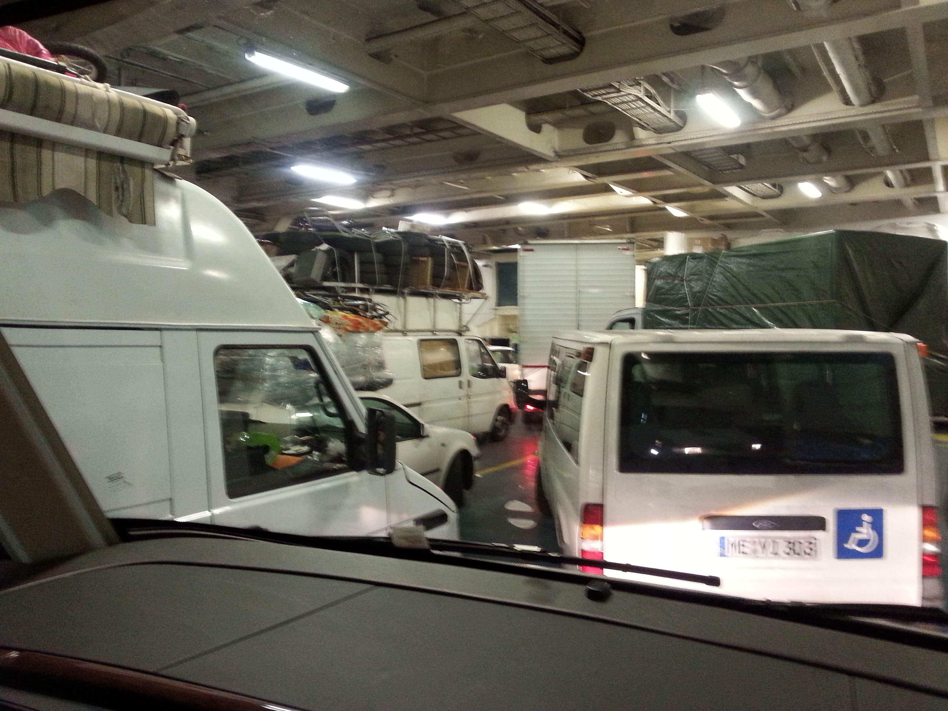 Niemand vom Bordpersonal weist ein. Ein großes Lob an Jürgen, der ruhig und souverän nach einer weiteren Stunde unser Womo (das gar nicht weit von der Ausfahrt entfernt stand) heil von Bord gebracht hat. Für Insider: Kein furchtbarer Mensch!
