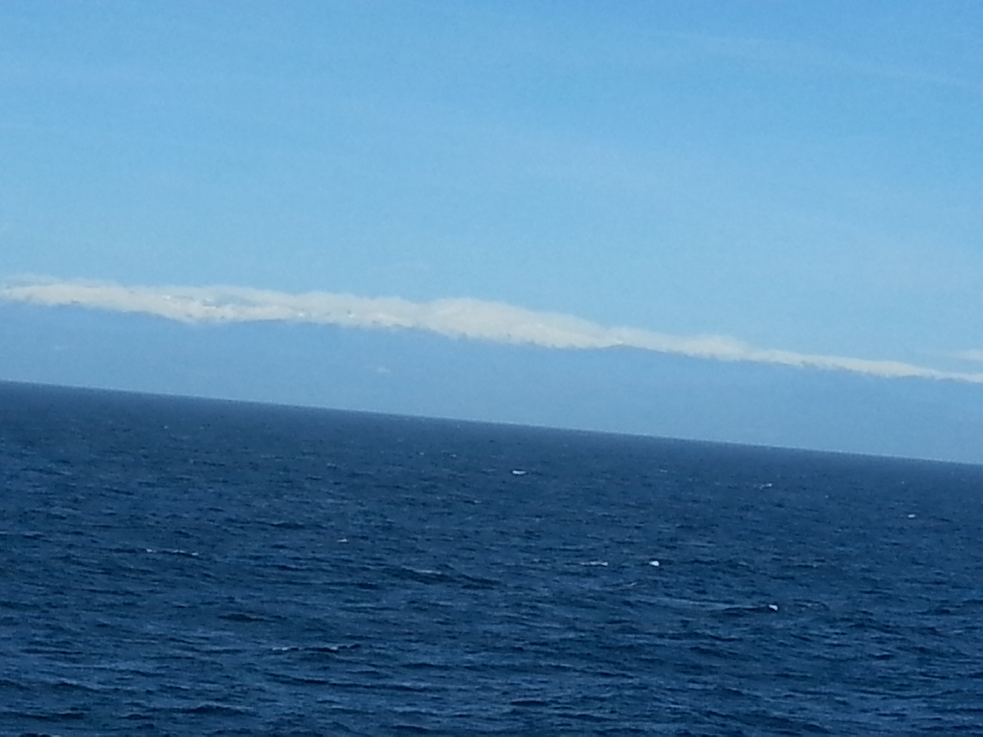Um 17.30 h legt das Schiff wieder ab, der Seegang nimmt zu. Schließlich wird das Betreten des Außendecks untersagt. Die Gicht der hohen Wellen umspült unser Fenster auf Deck 7. Ist zum Glück dicht! Und die Tablettchen wirken wirklich prima!