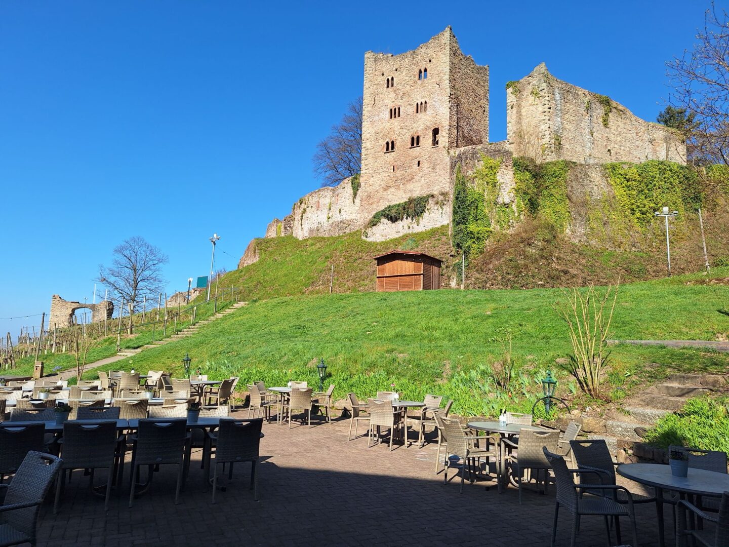 Die erste gemeinsame Übernachtung ist auf einem schönen Stellplatz unter der Schauenburg von Oberkirch, die wir am nächsten Morgen noch besuchen. Die Burgschenke mit Biergarten macht einen sehr guten Eindruck und am Stellplatz gibt’s Strom und eine Dumpstation sowie eine schöne Aussicht.