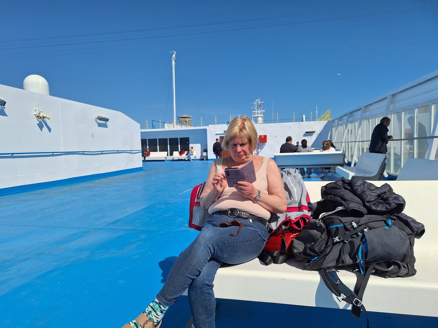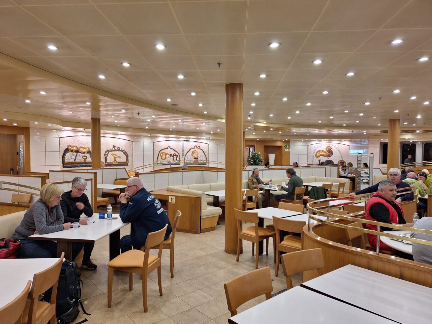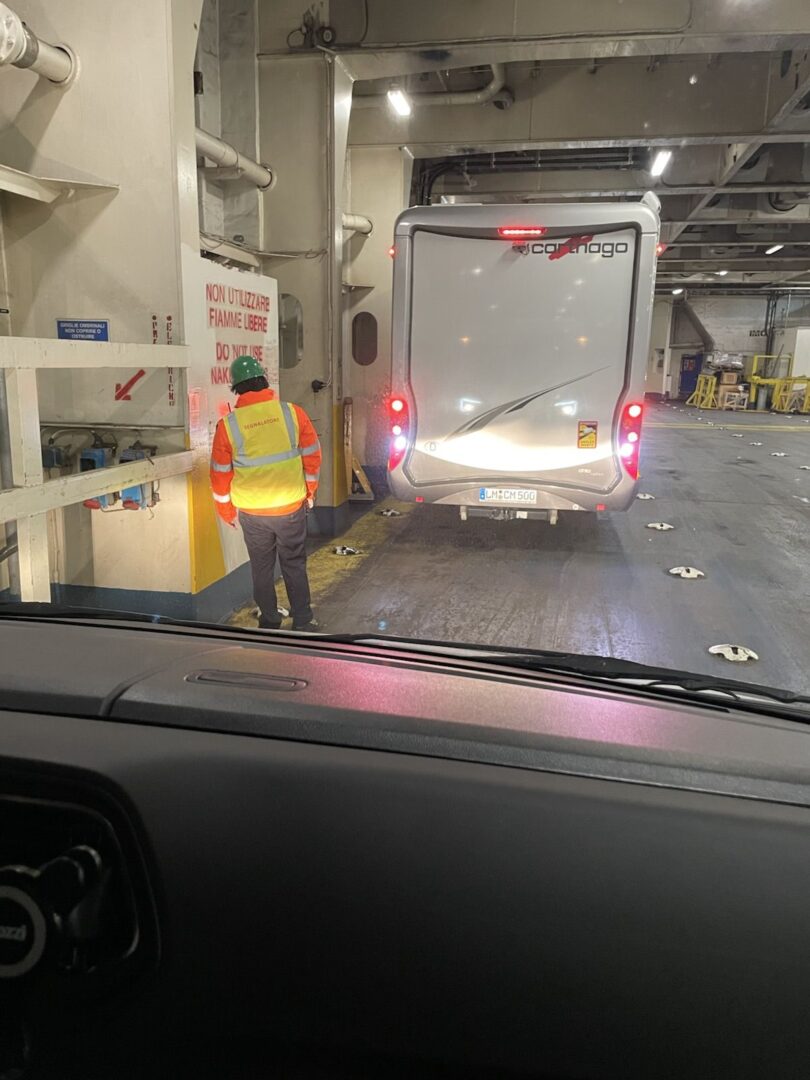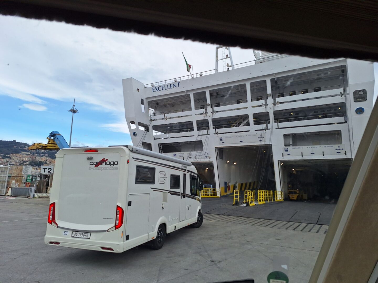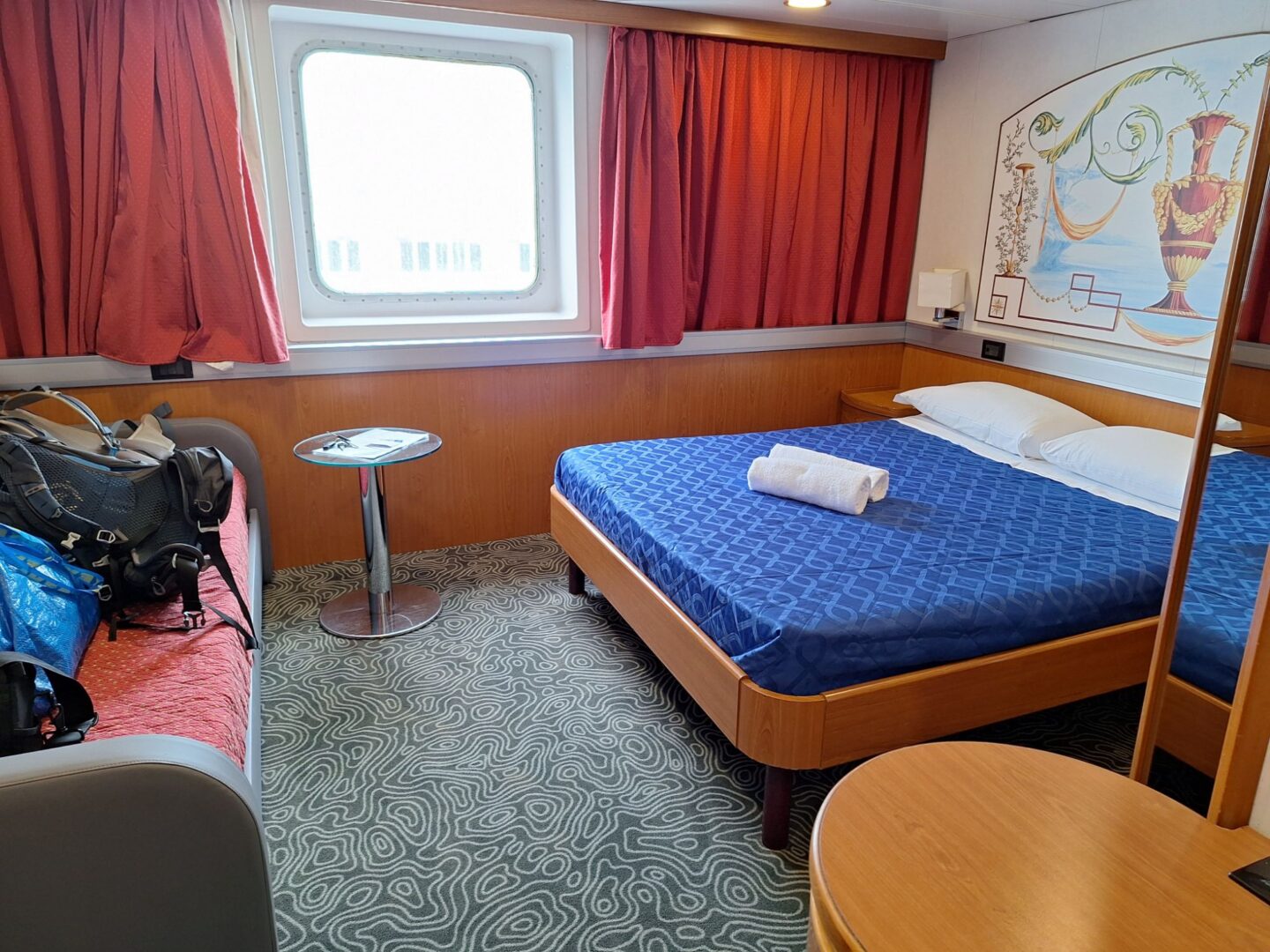 Schon kurz nach unserer Ankunft im Hafen werden wir auf das Schiff gewunken – Excellent ( Reederei GNV) heißt es. Die Kabinen sind geräumig und sauber.