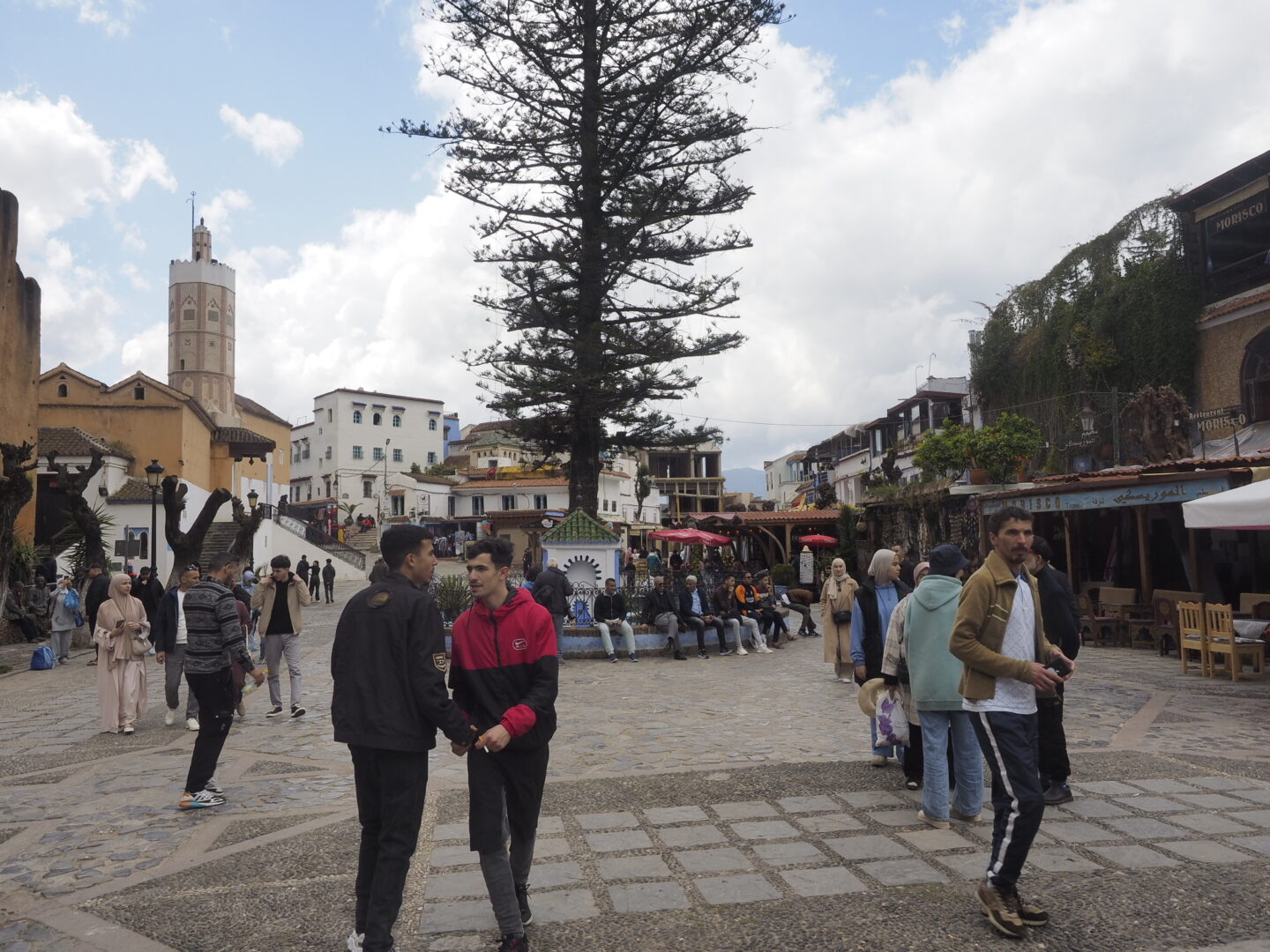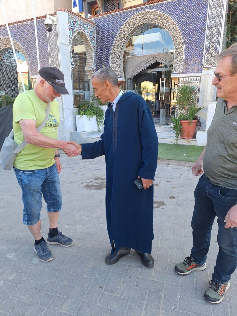 Am Dienstag halten uns die Suche in Tanger ohne Navi ( kein Internet) nach Supermarkt und Telefonshop auf, gegen Nachmittag sind zumindest Benners mit funktionierender Simkarte ausgestattet und wir fahren weiter bis Chefchauen. Die Beschilderung zum dortigen Campingplatz fehlt an der entscheidenden Stelle und bald landen wir auf winzigen Gässchen im dicksten Verkehrsgewimmel. Nix geht mehr, vorwärts nicht und rückwärts auch nicht. Drei selbsternannte Helfer wollen uns aus dem Gewühl befreien und produzieren dabei noch mehr Durcheinander. Endlich klappt das Wendemanöver, ich steige ein und schon springt einer der Drei hinter mir ins Womo und bekundet, uns zum Camping begleiten zu wollen. Das will ich aber auf keinen Fall, denn mir schwant schon genau das, was dann eintritt und bewege ihn nachdrücklich, unser Auto wieder zu verlassen. Doch Jürgen plädiert, ihn mitzunehmen und – seine Hilfe ist nicht mehr erforderlich – bald sind wir am Campingplatz. Unser Trinkgeld wird zurückgewiesen, er wolle für so viel Mühe 20 EURO! Entweder 20 Diram oder gar nichts. Wir haben ihn nicht gebeten, er habe seine Hilfe aufgedrängt. Dann kommt der Platzwart und er ist zusammen mit seinen beiden Kumpanen, die uns hinterhergefahren sind, blitzschnell verschwunden – mit 20 Diram.