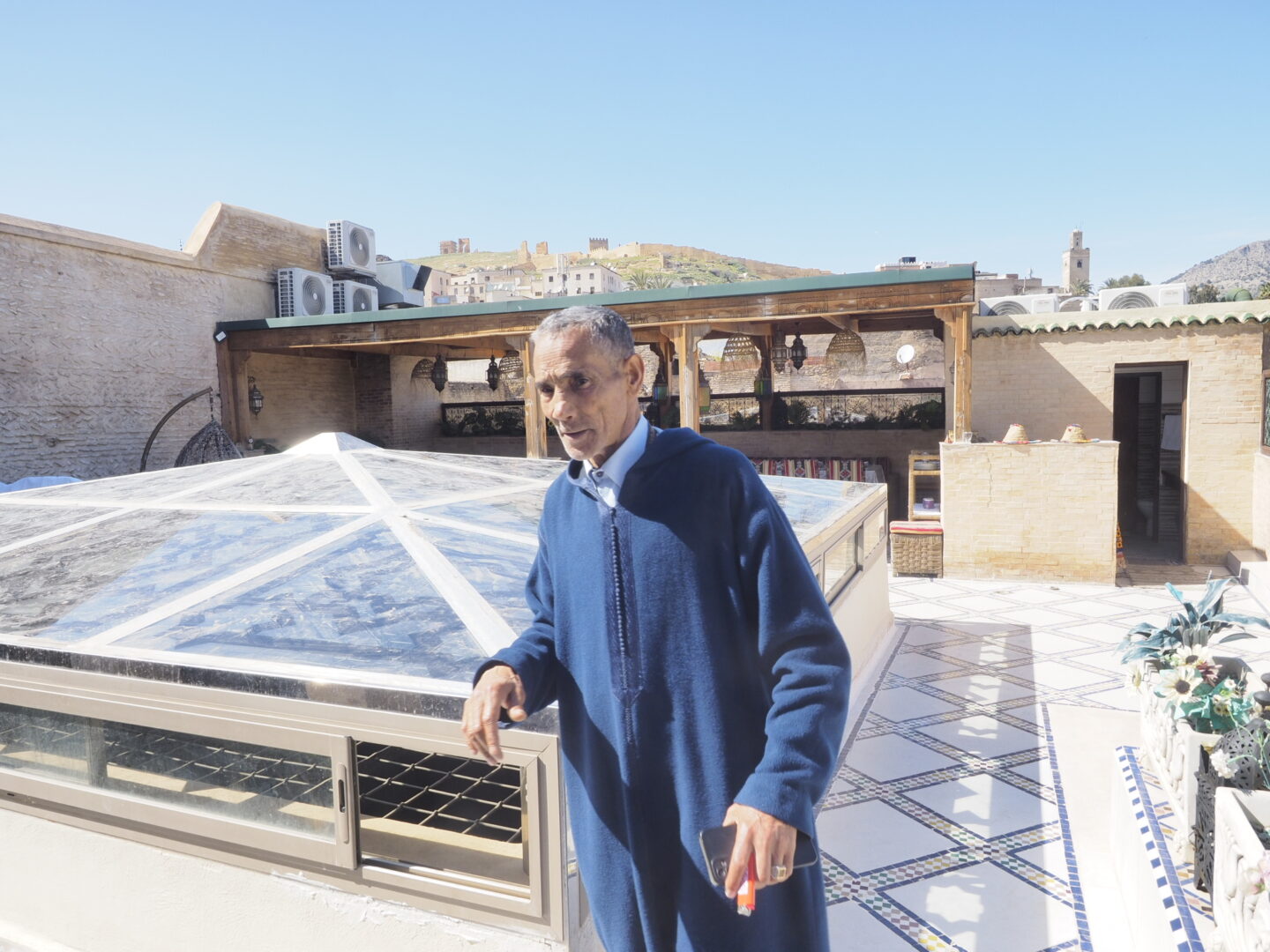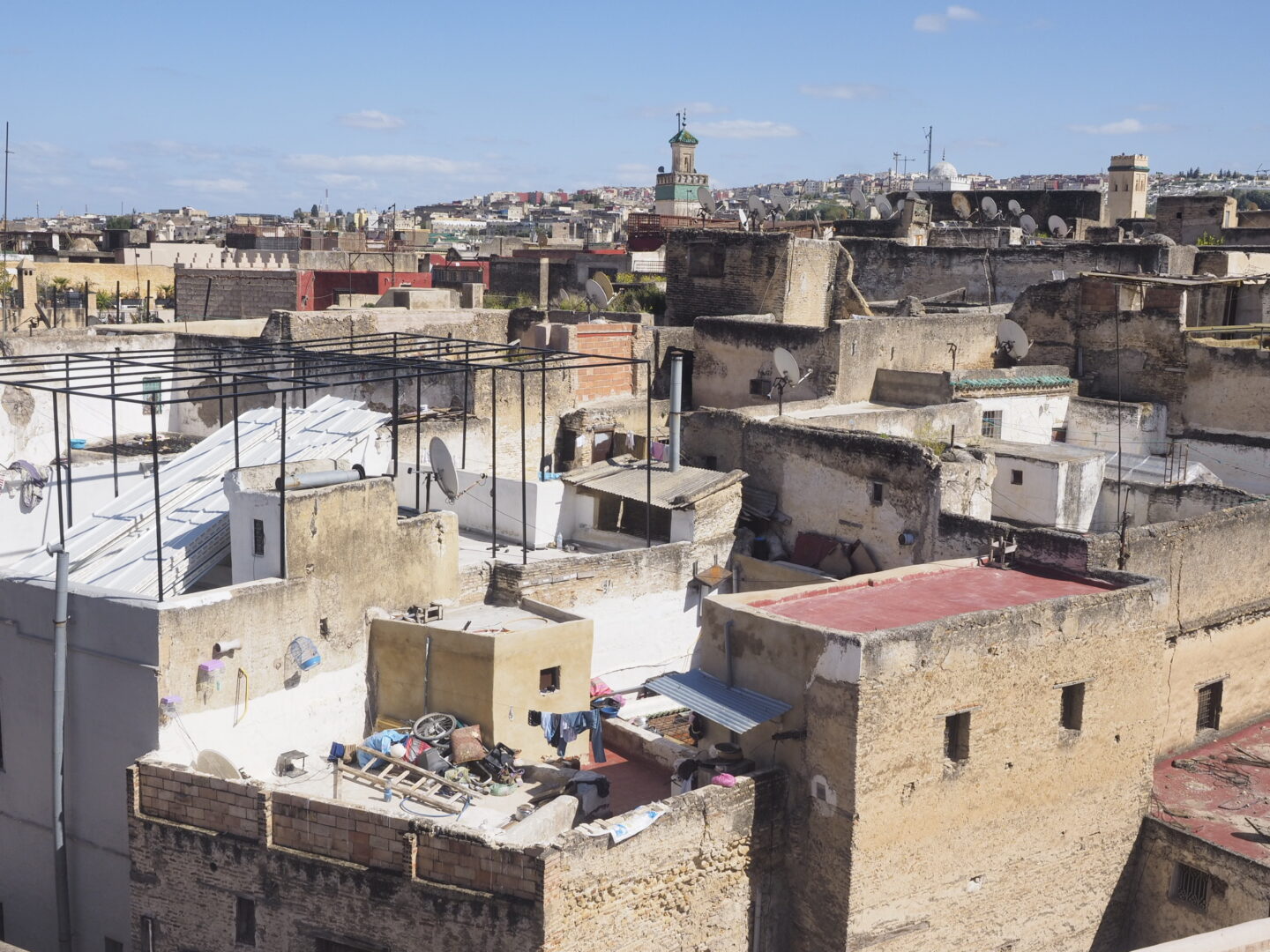 Zuletzt führt er uns in ein völlig überteuertes Restaurant, wo wir über den Dächern von Fes für 170 Diram (17 €) ein Dreigangmenue bestellen.