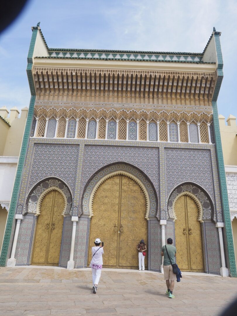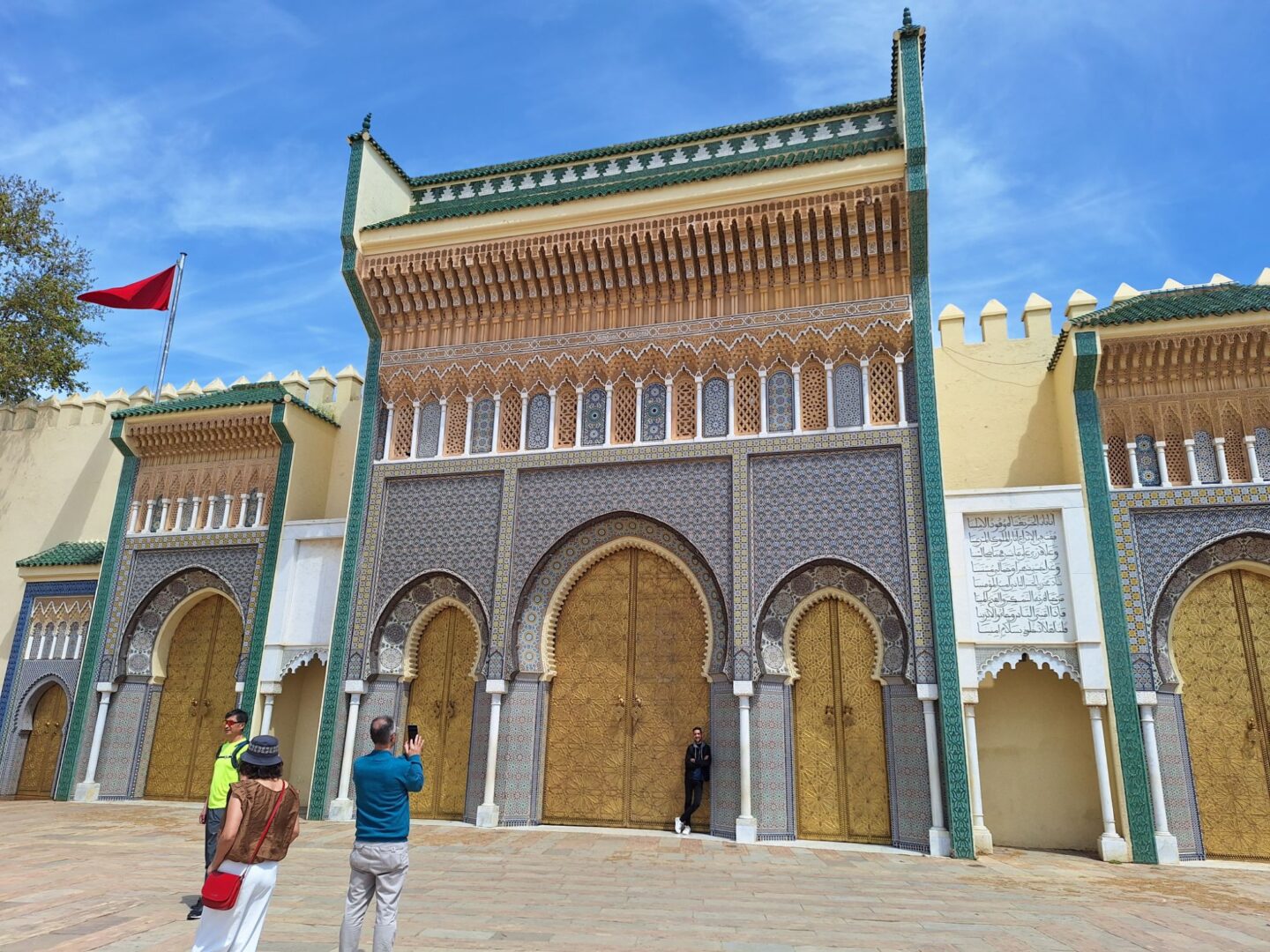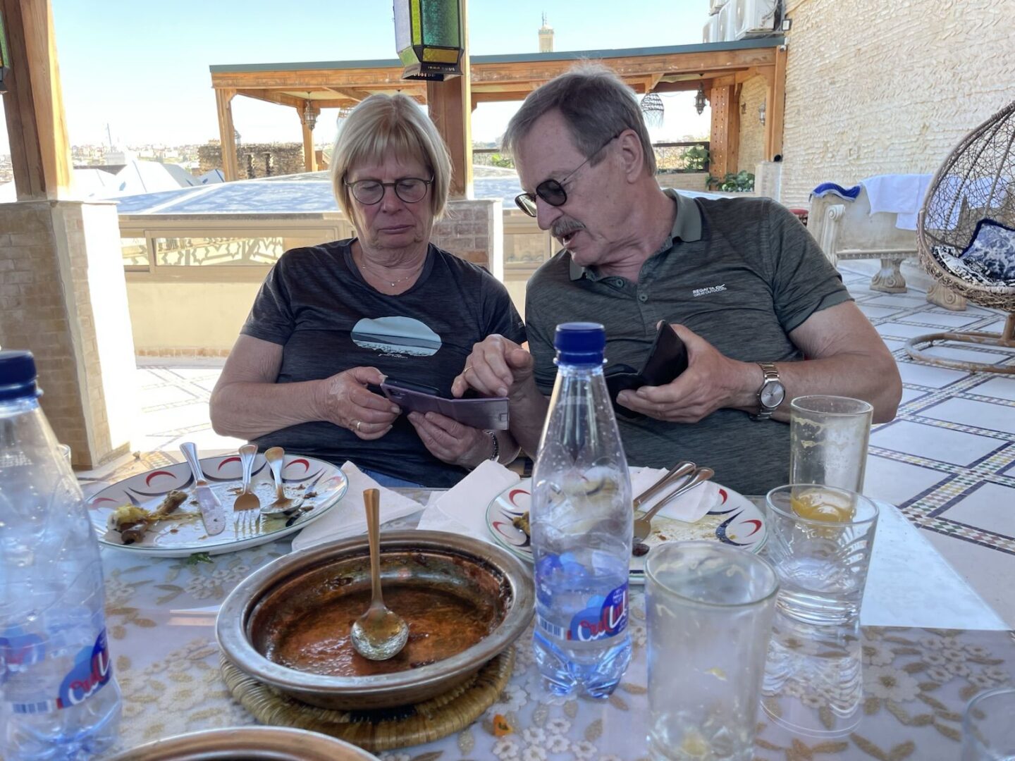 Auf dem Camping „Diamant Vert“ spricht uns ein junger Mann wegen einer Führung durch Fes an und bald sind wir uns einig: Für 800 Diram (80 €) holt uns am nächsten Tag – Donnerstag – um 11.30 Uhr ein Taxi ab, bringt uns vorbei am Königspalast