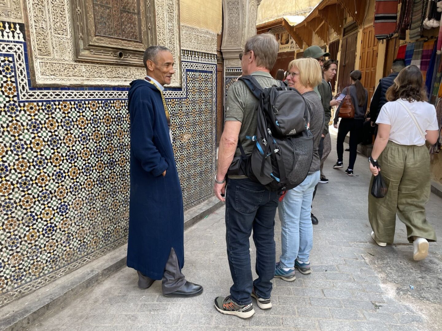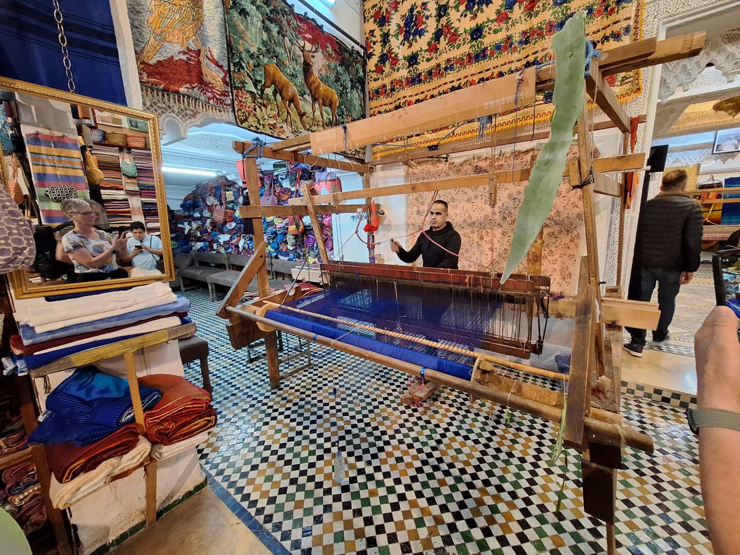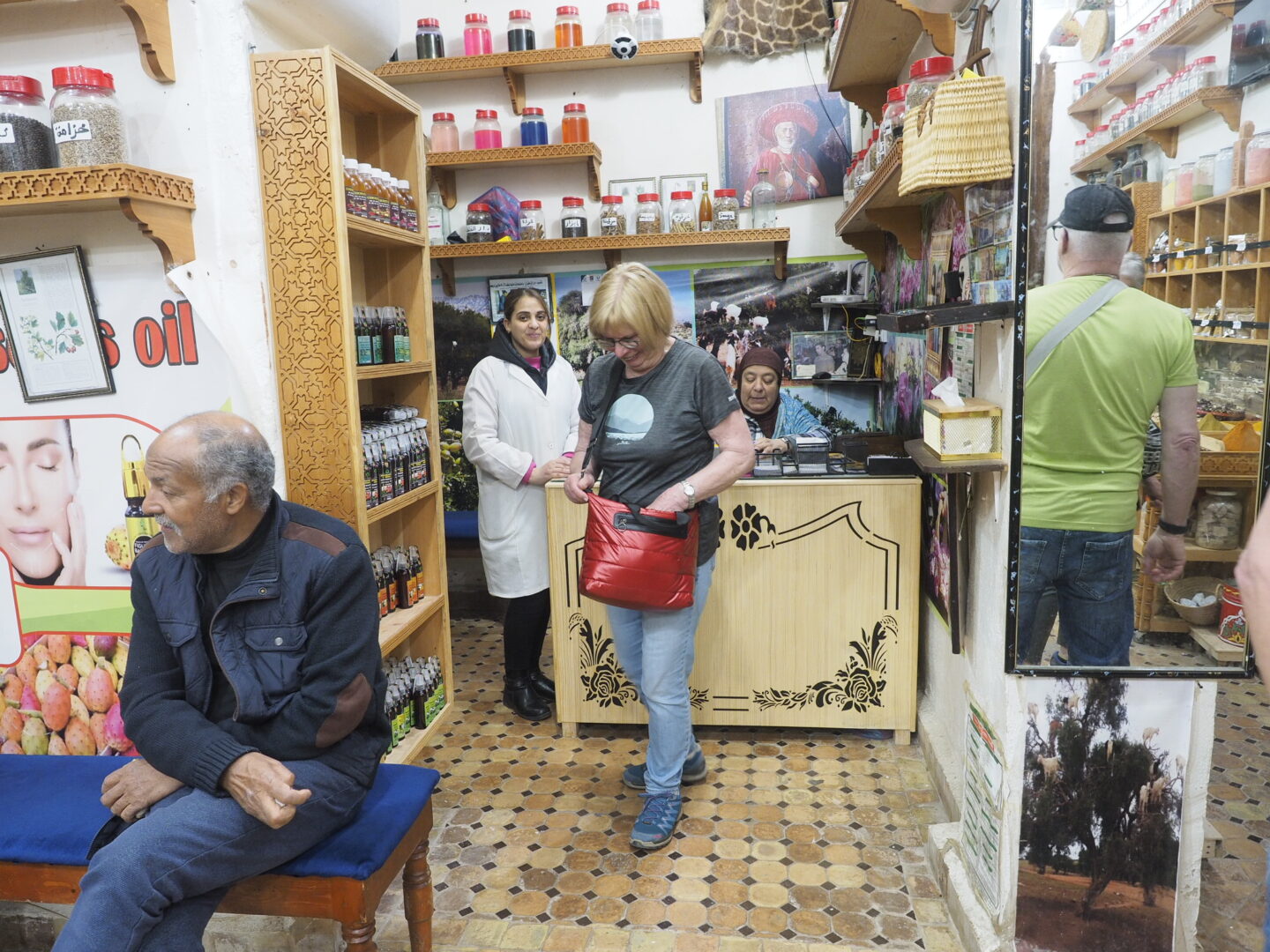 Neben verschiedenen Moscheen (alle nur von außen, nur Muslime dürfen hinein) zeigt Dirss Faydi uns die Koranschule, eine Weberei, eine Ledergerberei, ein Hamam und einen Naturkosmetikladen. Natürlich ist erwünscht, dass wir überall etwas kaufen, wofür Dirss dann Provision erhält.