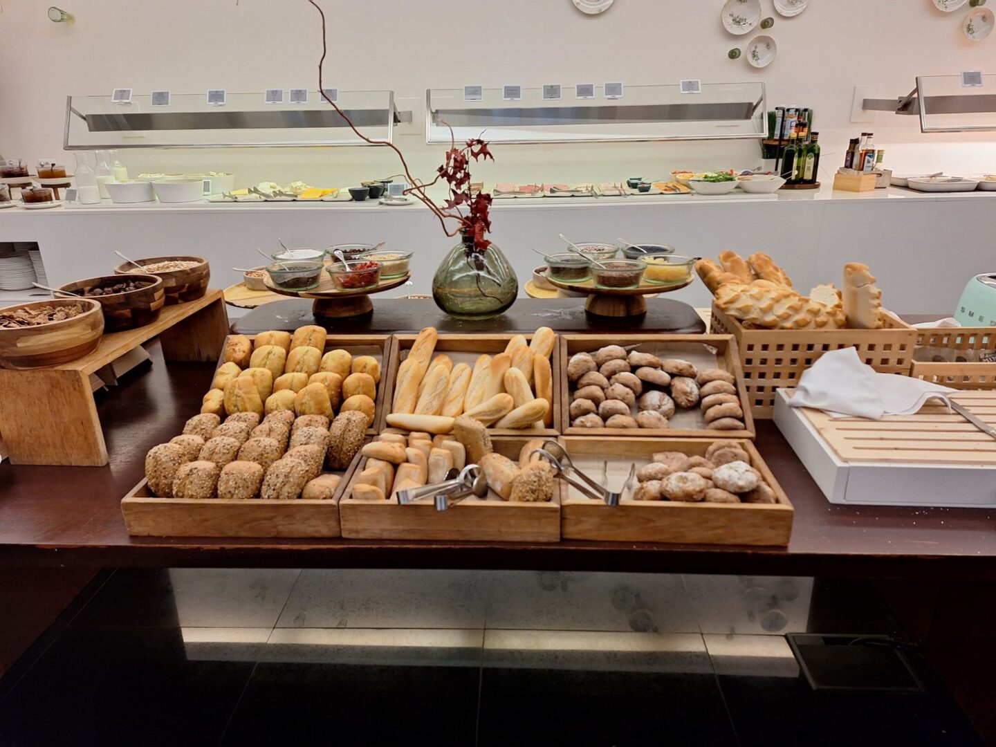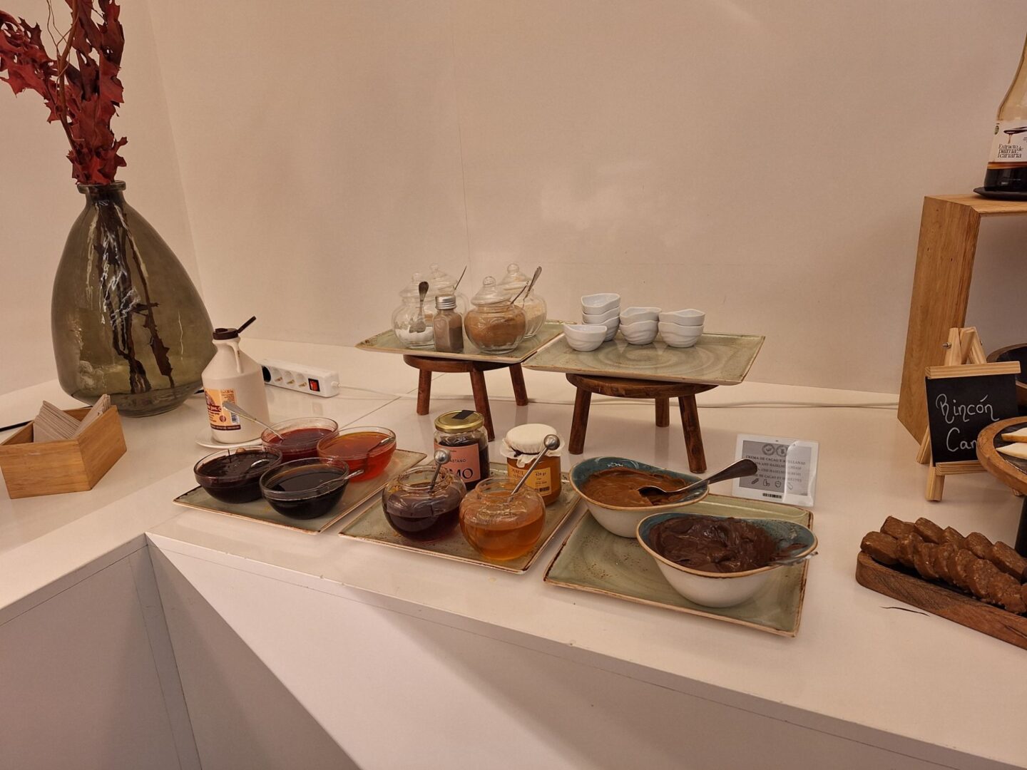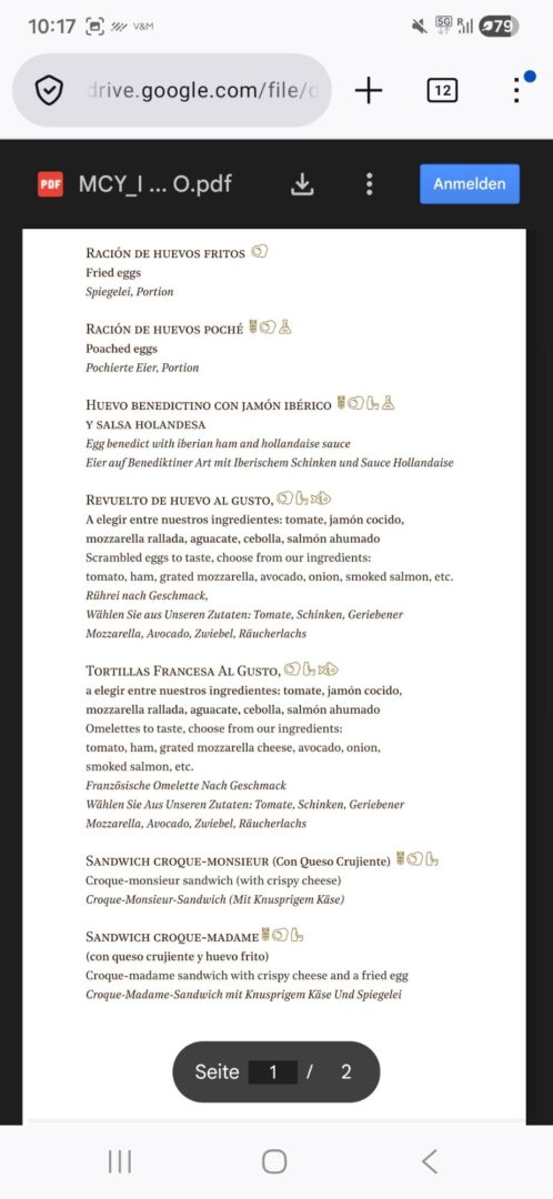 … denn das Fühstück im Hotel ist Versuchung pur: Verschiedene, frisch im Restaurant hergestellte Säfte, iberische Wurt-, Schinken-und Käsesorten, Rühreier, gekochte Eier, Tortilla, Räucherfisch, echter Kaviar, Joghurt, Obst, zahllose Brot-und Brötchensorten ….. und wem das alles noch nicht genug ist, der kann von der Frühstückskarte noch diverse Eier- und Toastgerichte bestellen.