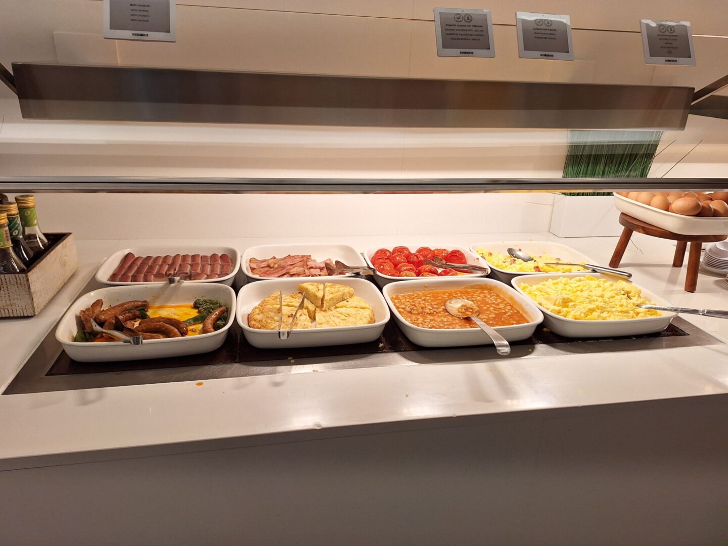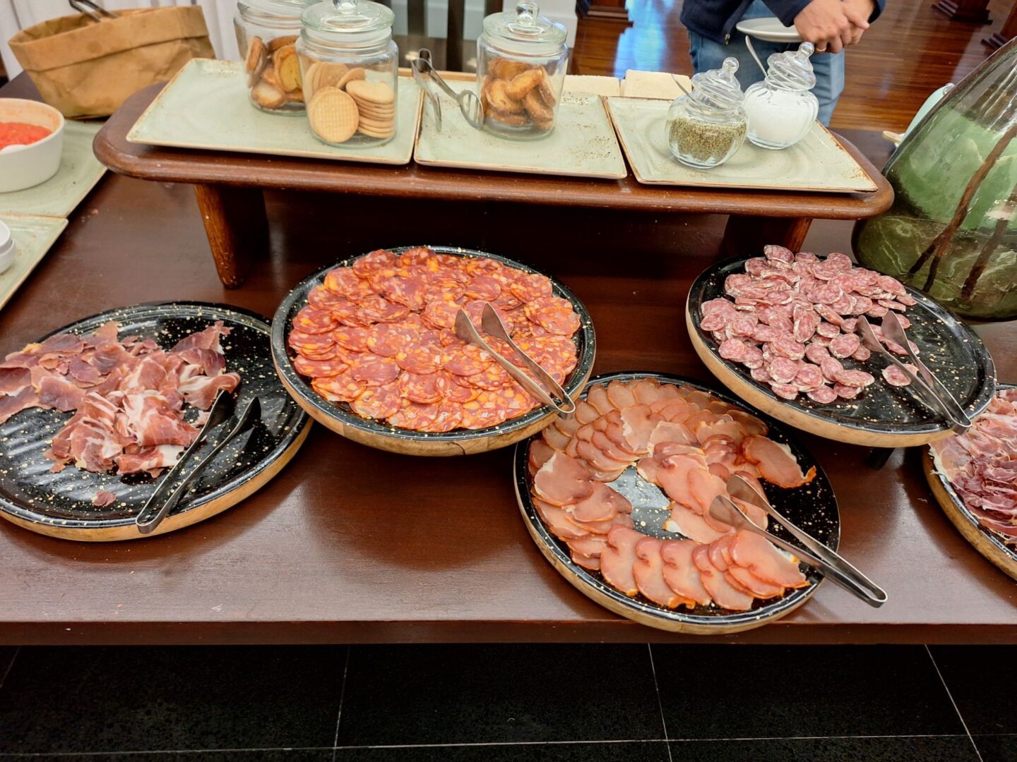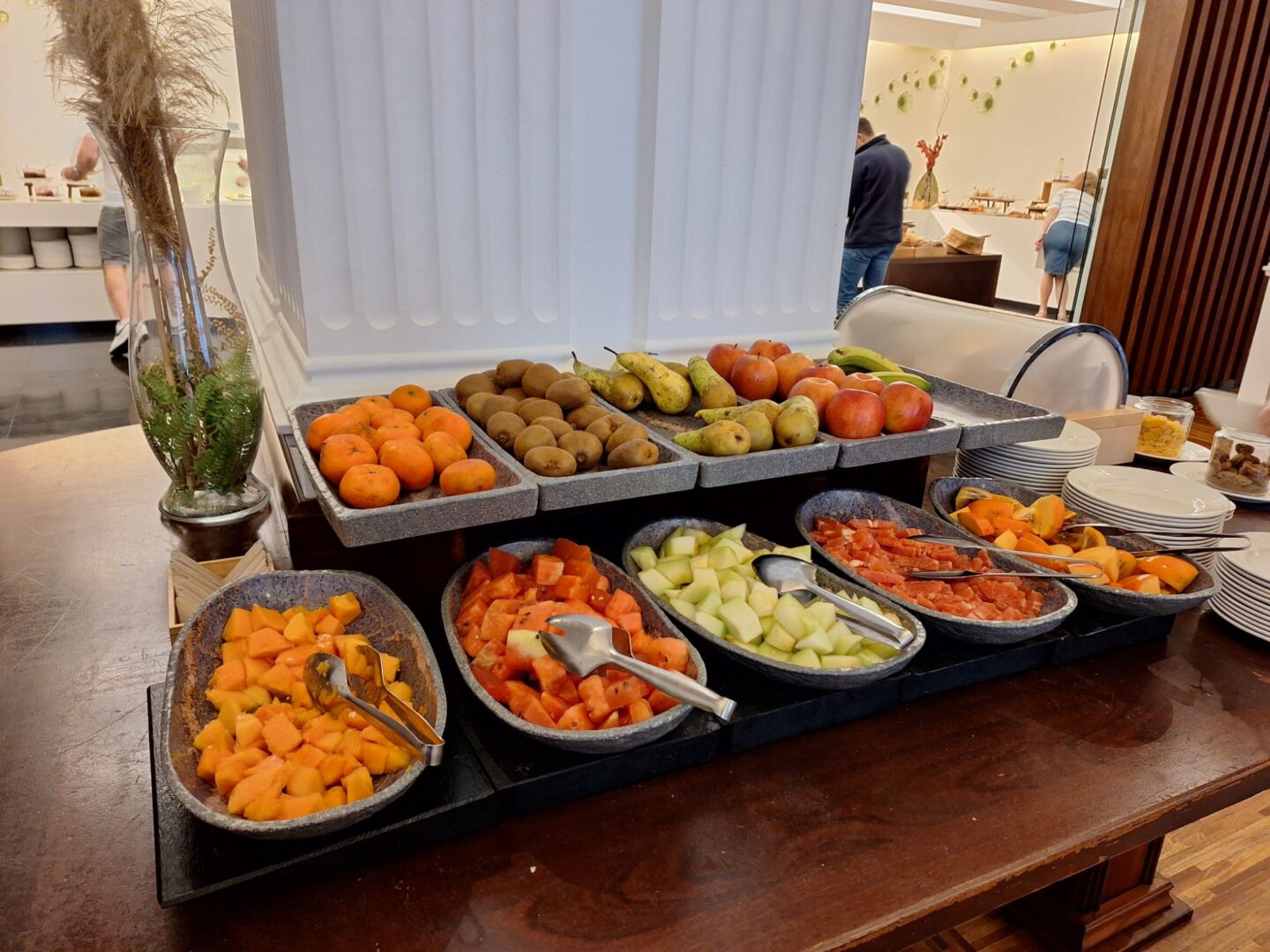 … denn das Fühstück im Hotel ist Versuchung pur: Verschiedene, frisch im Restaurant hergestellte Säfte, iberische Wurt-, Schinken-und Käsesorten, Rühreier, gekochte Eier, Tortilla, Räucherfisch, echter Kaviar, Joghurt, Obst, zahllose Brot-und Brötchensorten ….. und wem das alles noch nicht genug ist, der kann von der Frühstückskarte noch diverse Eier- und Toastgerichte bestellen.