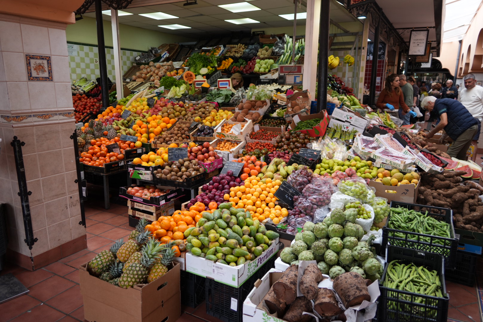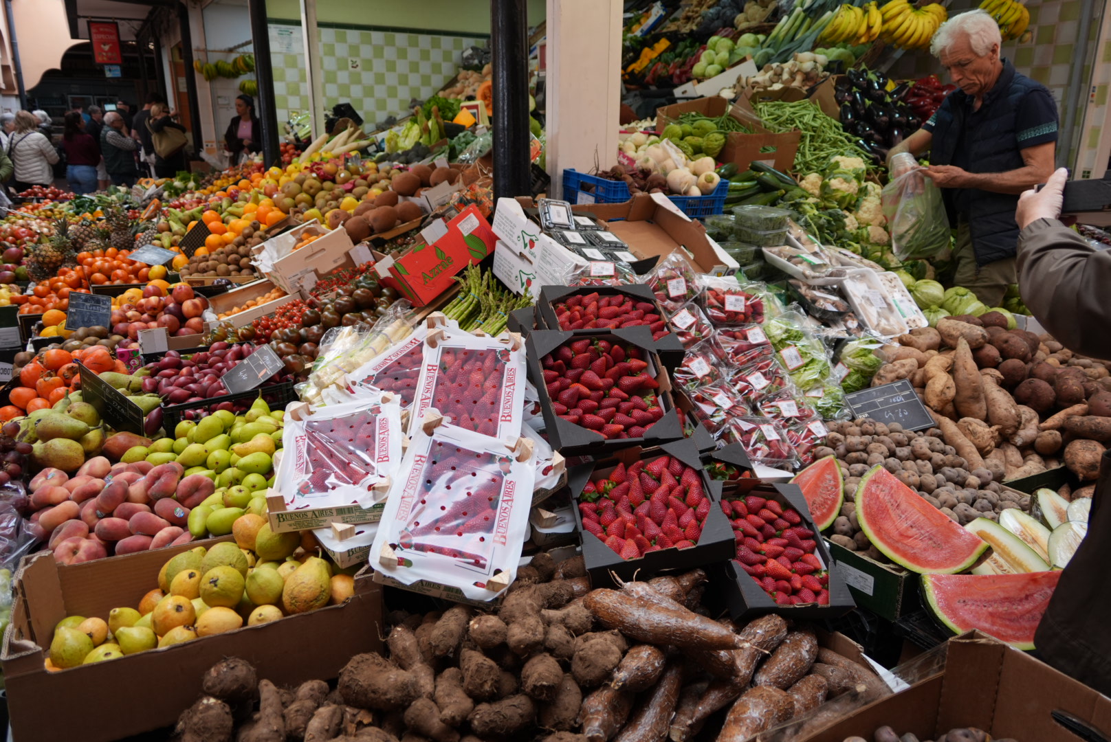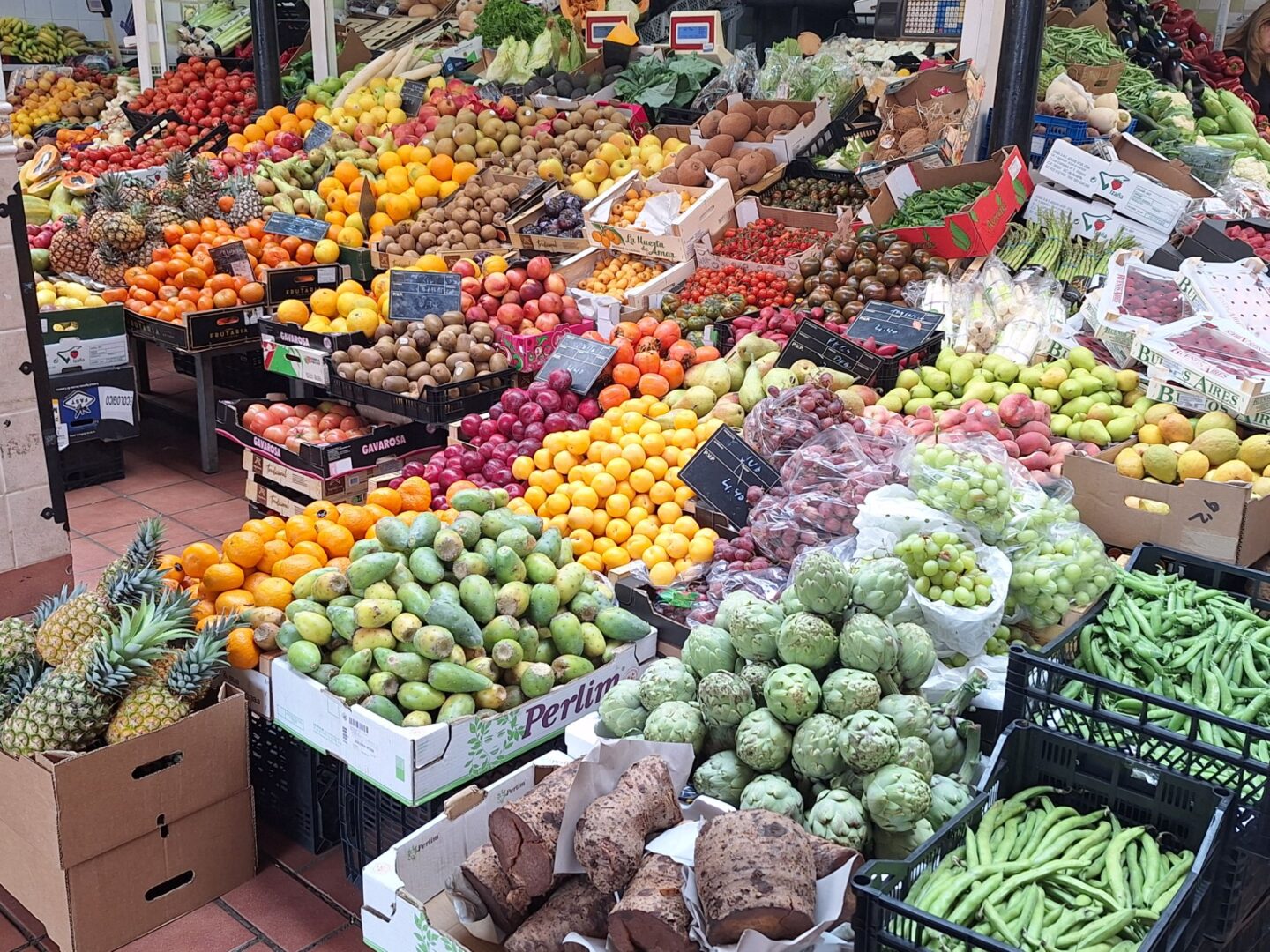 Viel Afrika findet man hier inzwischen nicht mehr. Trotzdem ist der Markt beeindruckend. Früchte und Obst in den leuchtendsten Farben lassen das Wasser im Mund zusammenlaufen. Sehr schönes Kunsthandwerk bietet sich als Souvenir an. Im Tiefgeschoss kann man wieder frische Fischfänge bestaunen und – faszinierend – es riecht nirgendwo nach Fisch. An vielen Ständen kann man frisch zubereitete Seafood genießen, aber da hätten wir weniger frühstücken müssen. Schade, aber es passt nichts mehr rein in den Bauch……