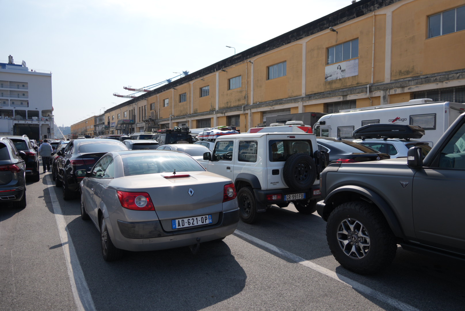 Passkontrolle geht zügig für alle. Der Zoll ist für die Landsleute ein Offenbarungseid. In vielen, teils überdachten Reihen stehen die tunesischen Autos und haben alles ausgeladen.