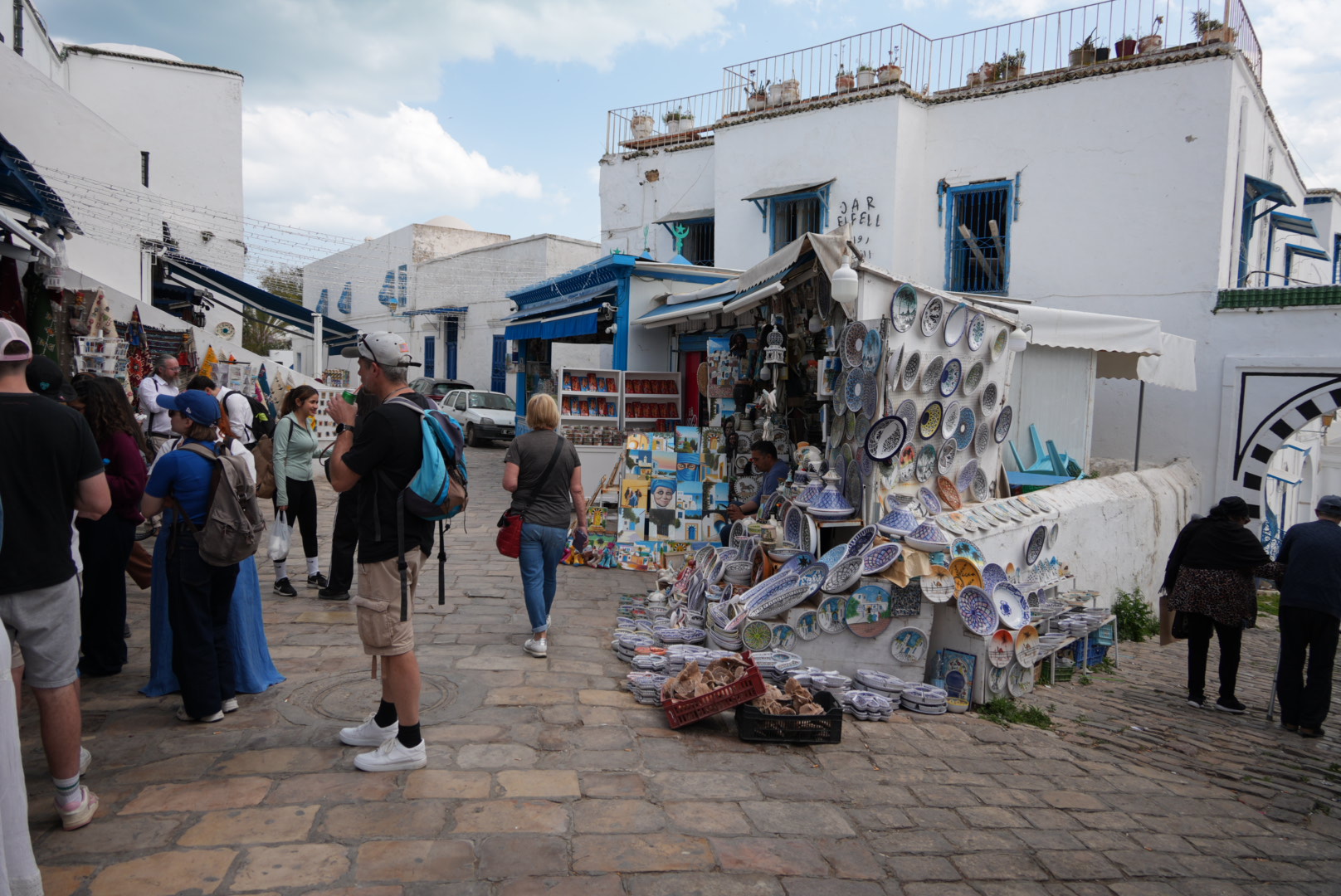 Als Übernachtungsplatz wählen wir in Park4night einen Parkplatz am Meer in Sidi Bou Said, einer als sehr sehenswert beschriebenen Stadt nahe Tunis. Bis in die Nacht hinein ist es sehr laut, Poser gibt’s hier reichlich. Doch dann wird es ruhig und wir können bis 7.30 Uhr (deutsche Zeit 8.30) wunderbar schlafen.