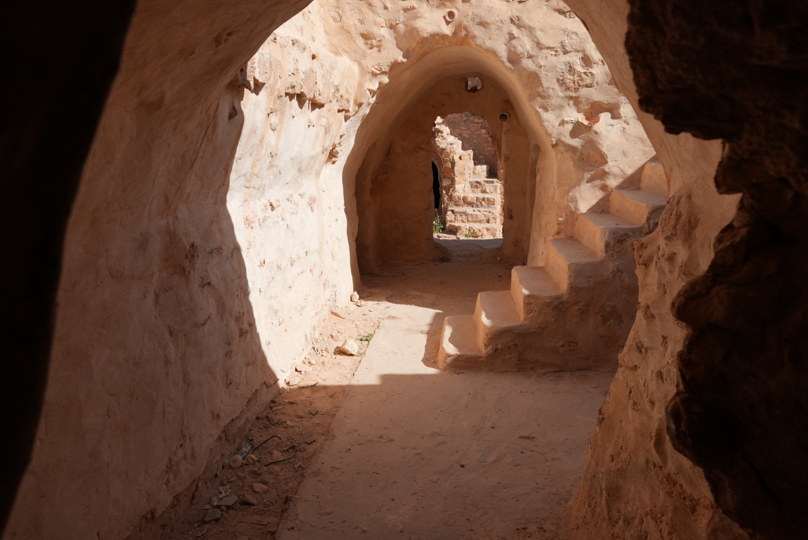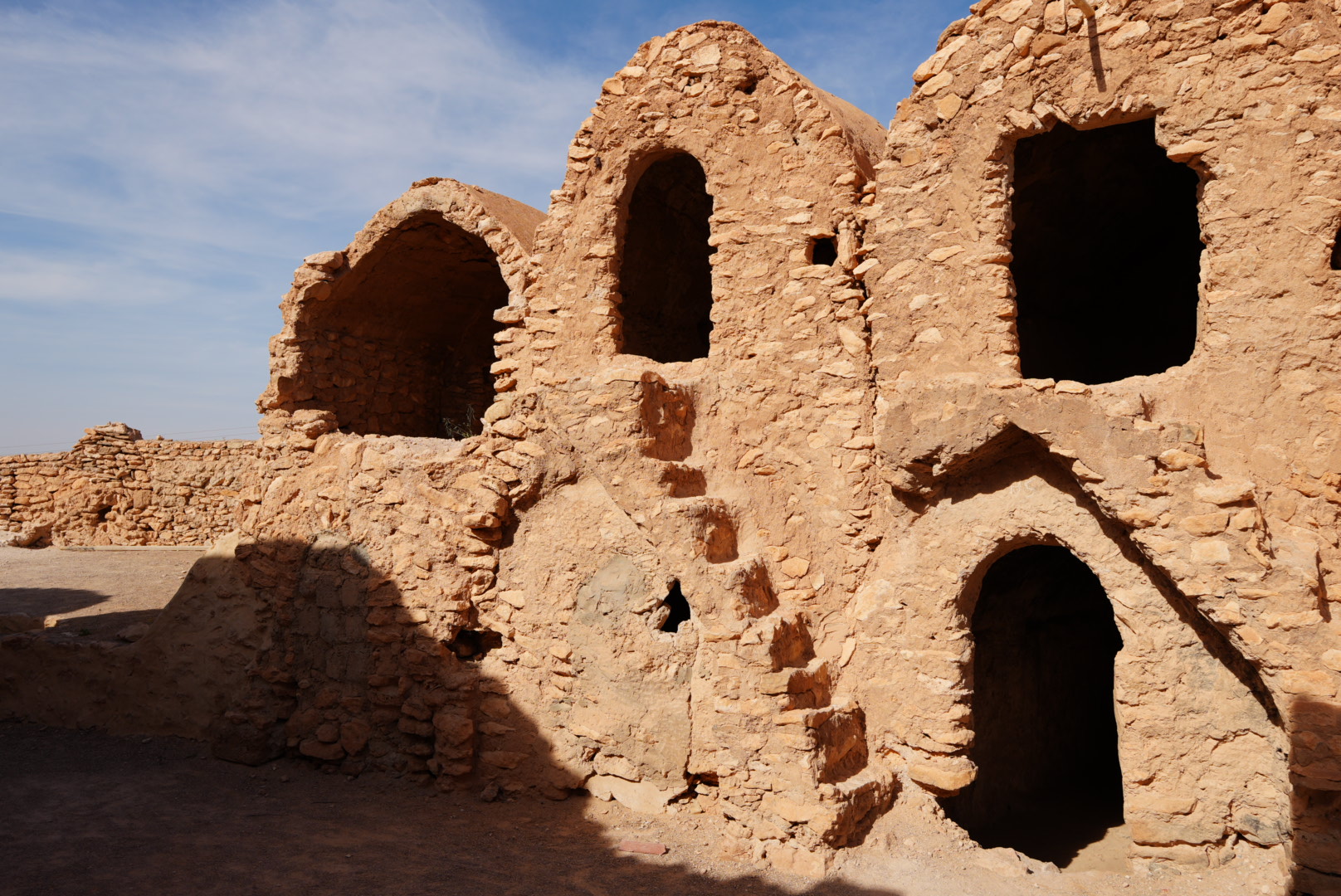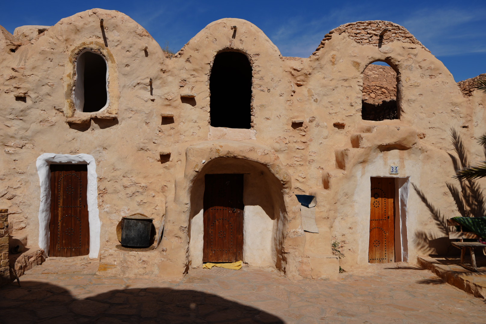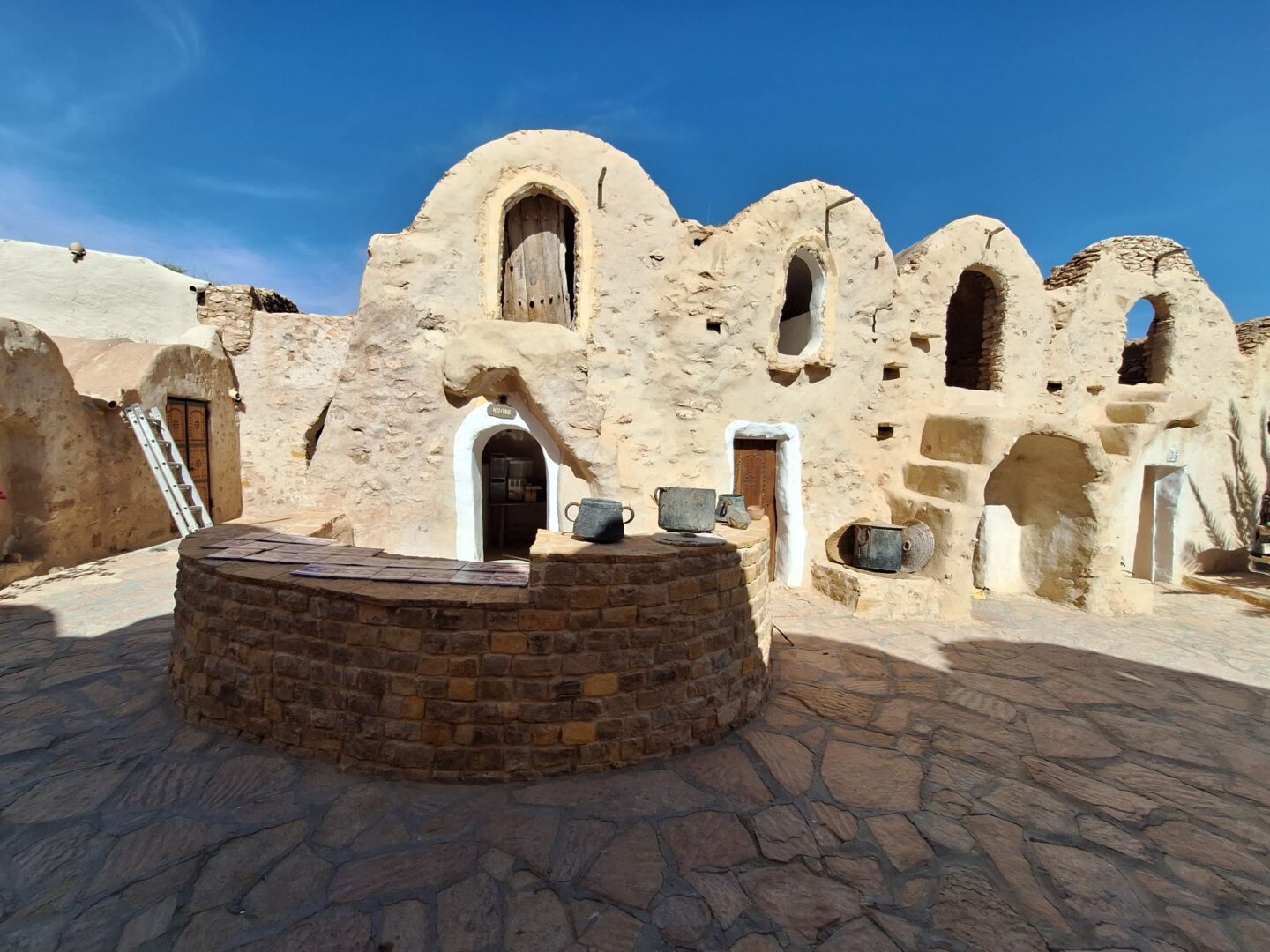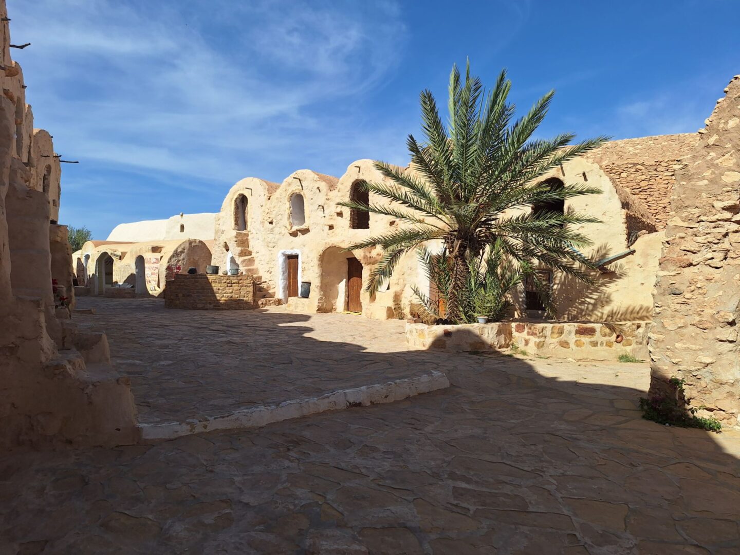 und sind gegen 15 Uhr in Ksar Hadada, einer alten, verlassenen Speicherstadt, wo 1997 einige Episoden der Star Wars – Filme gedreht wurden. Heute werden Teile als Museum und als Hotel genutzt. (Wie schön, ein Wohnmobil zu haben!)